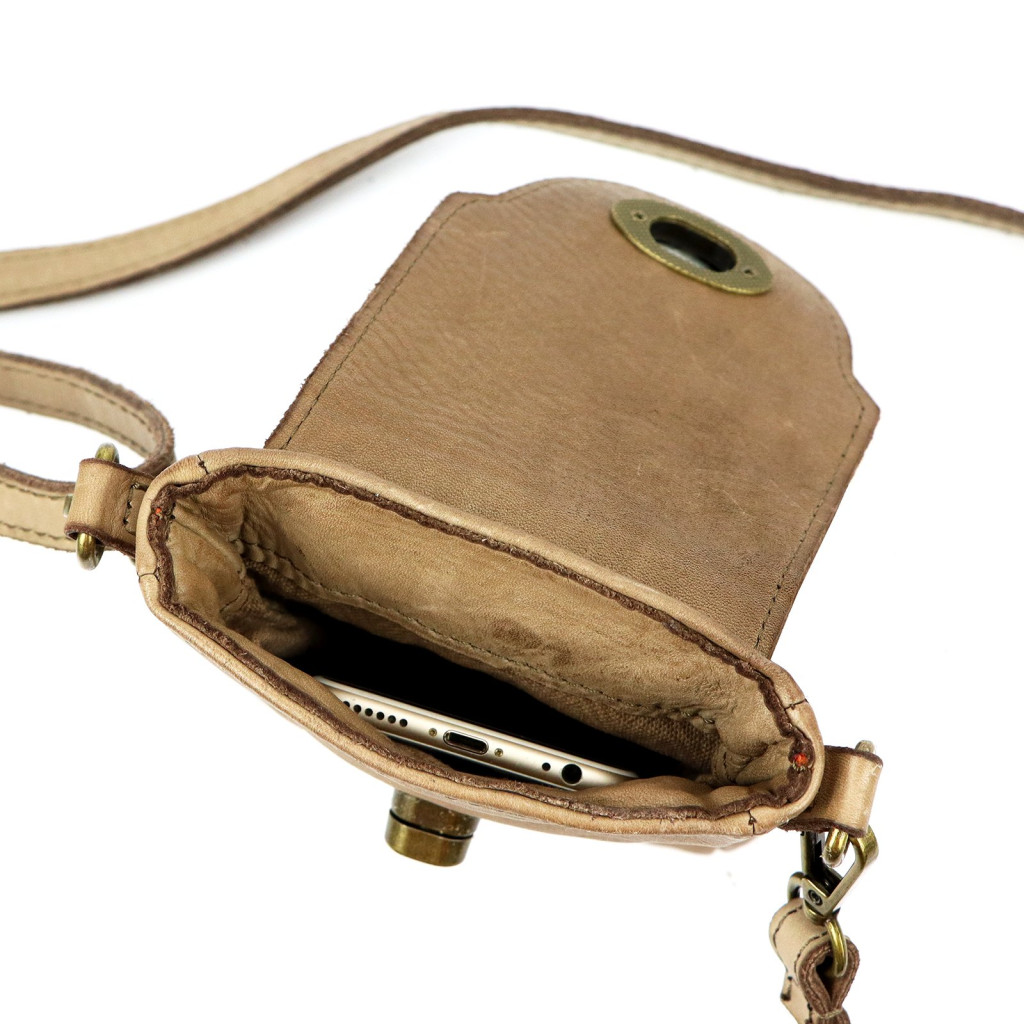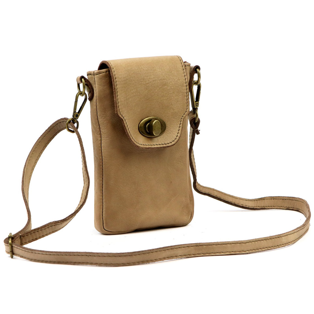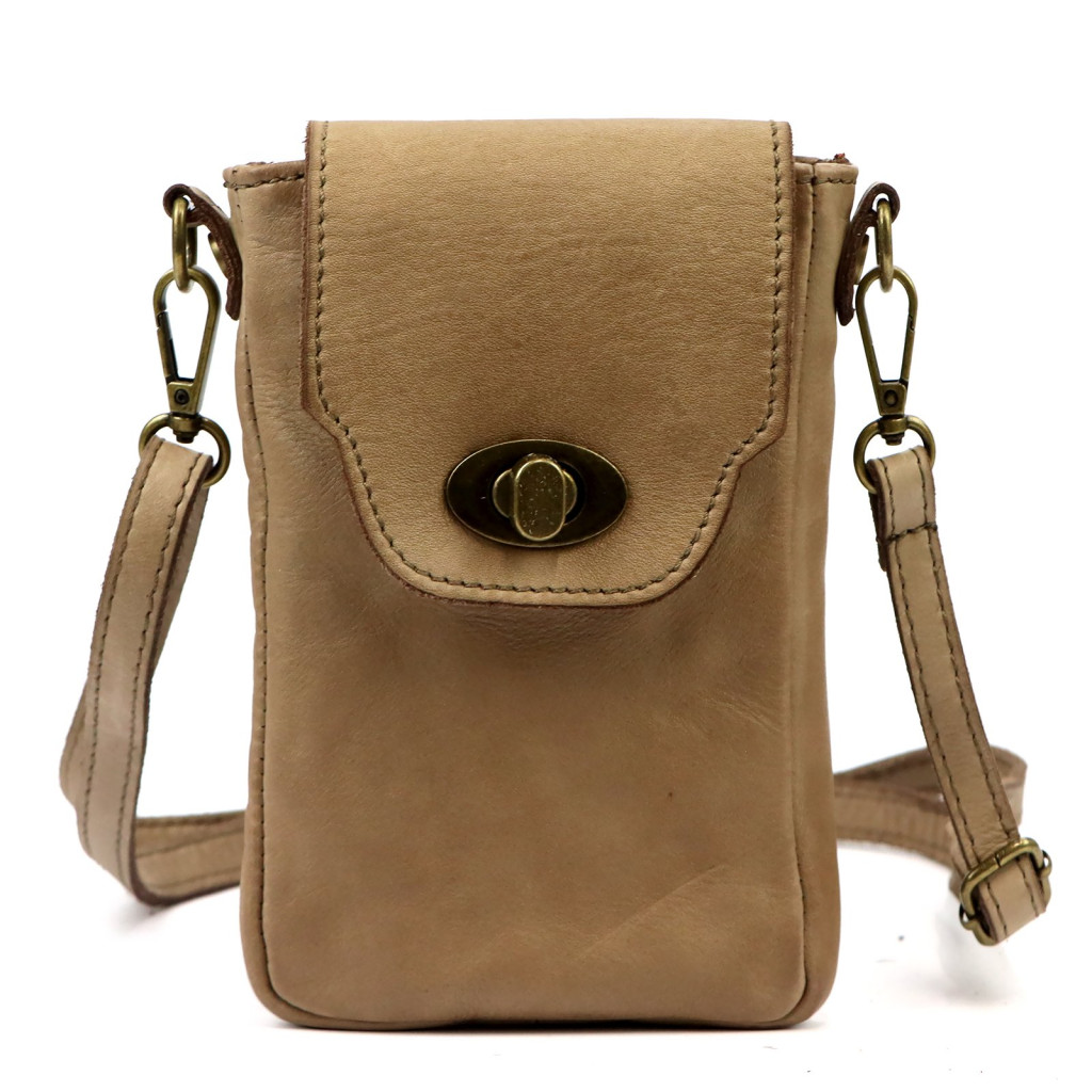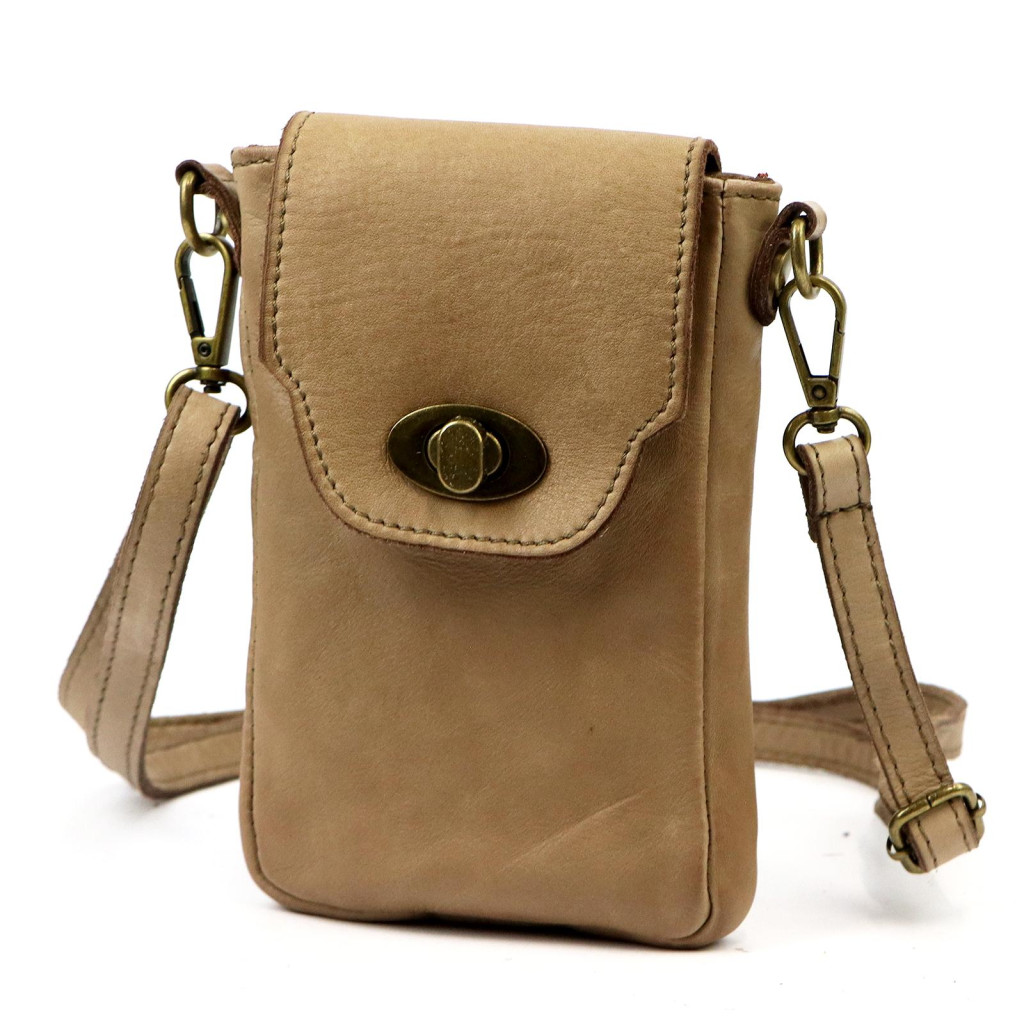 VS 045 drapp női bőr válltáska, mobiltartó 15 x 19.5 x 5 cm