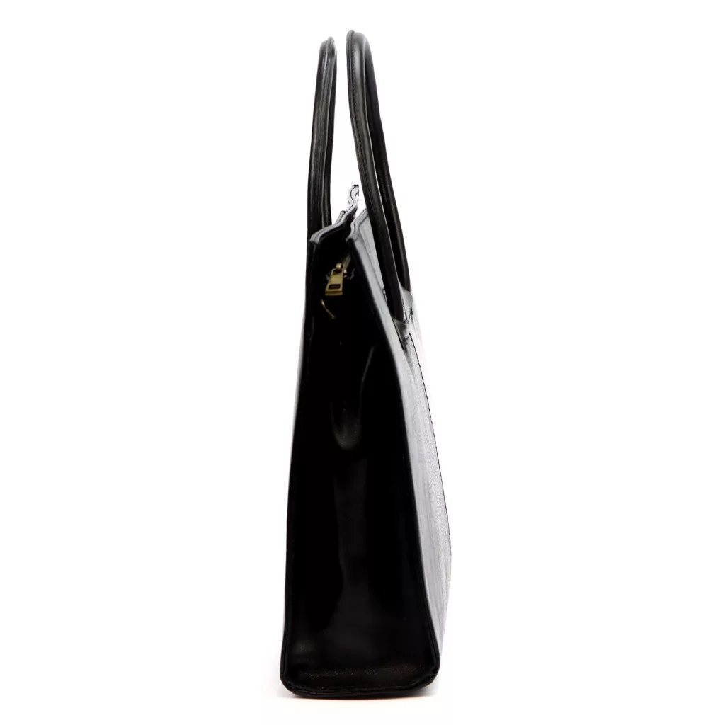 A táska prémium minőségű, selyemfényű marhabőrből készült. Sima, finoman fénylő felülete kifinomult hatást kelt, a természetes bőr pedig tartósságot és elegáns megjelenést biztosít. A fekete szín a feng shui szerint a bölcsességhez, erőhöz és magabiztossághoz kapcsolódik, időtálló árnyalatként határozott, professzionális karaktert ad a táskának. A dombornyomott márkajelzés visszafogott, igényes részlet, a szegecses talpazat pedig védi a táskát lehelyezéskor.