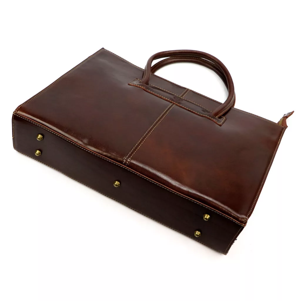 Elegáns, üzleties és időtálló megjelenés. A selyemfényű marhabőr, a mély sötétbarna árnyalat és a strukturált forma kifinomult aktatáskát eredményez, amely harmonikusan illeszkedik professzionális környezetbe.