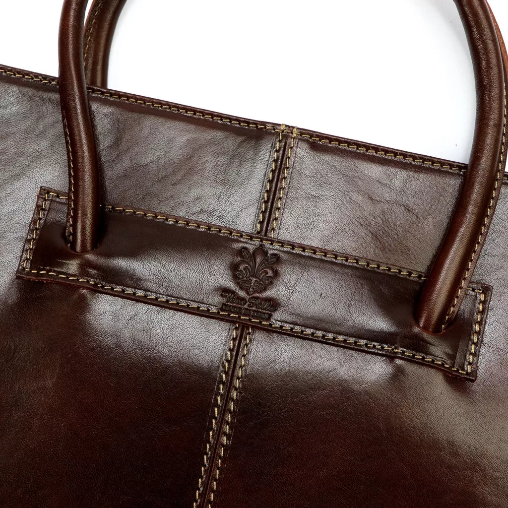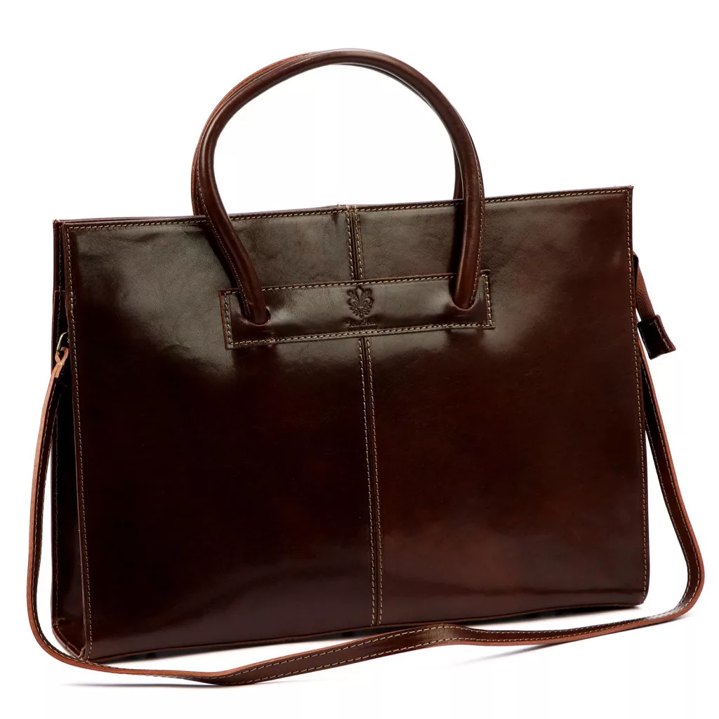A Florence 1028 sötétbarna női bőr aktatáska elegáns, üzleties megjelenésével és strukturált kialakításával professzionális kiegészítő munkához és hivatalos alkalmakhoz. Határozott vonalvezetése és arányos mérete kifinomult megjelenést biztosít, miközben praktikus belső elrendezést kínál.