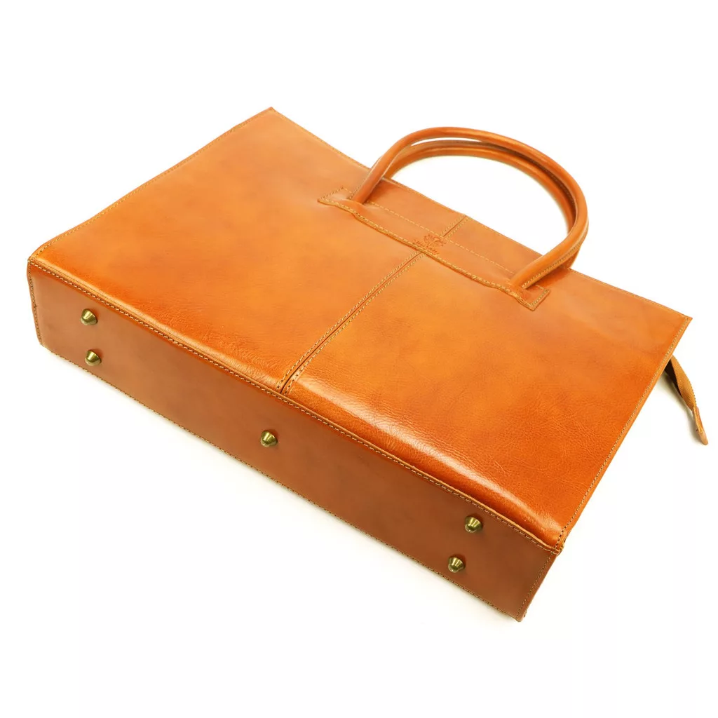 Elegáns, klasszikus és üzleties megjelenés. A selyemfényű marhabőr, a konyakbarna árnyalat és a strukturált forma kifinomult aktatáskát eredményez, amely harmonikusan illeszkedik professzionális környezetbe.