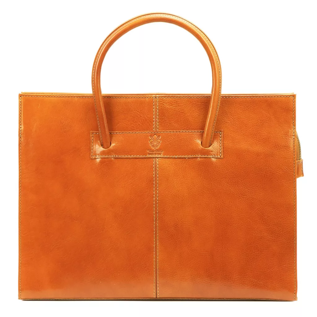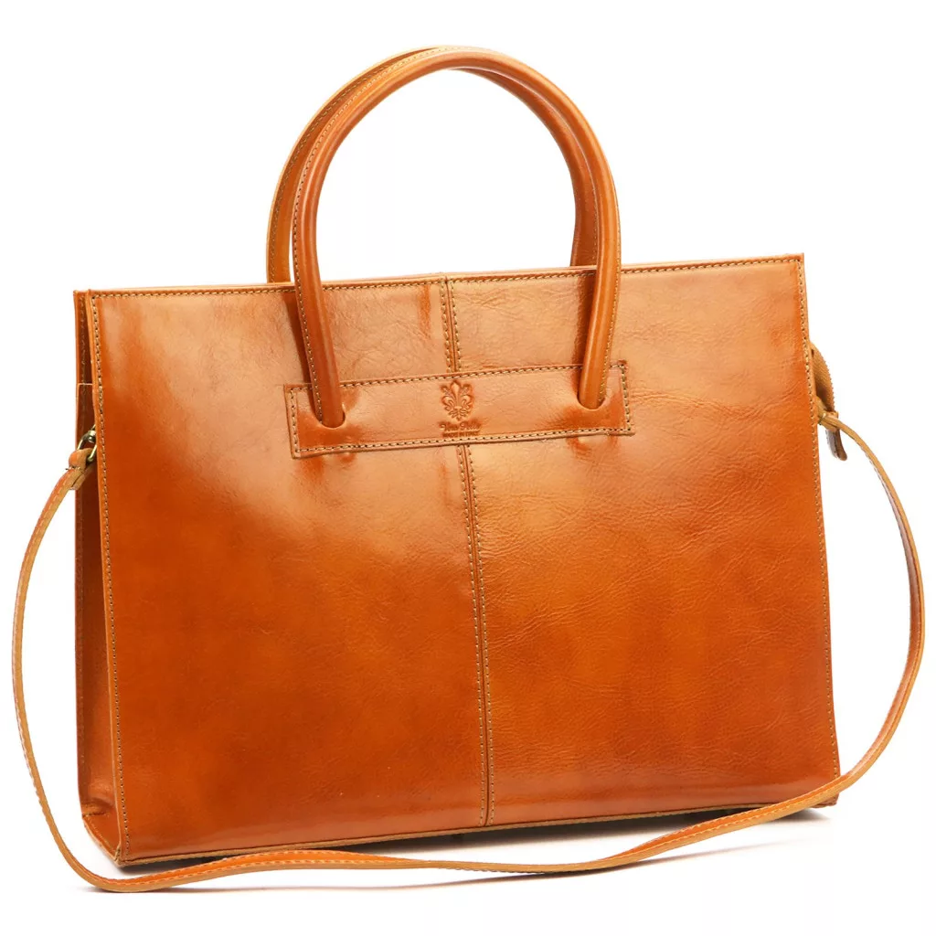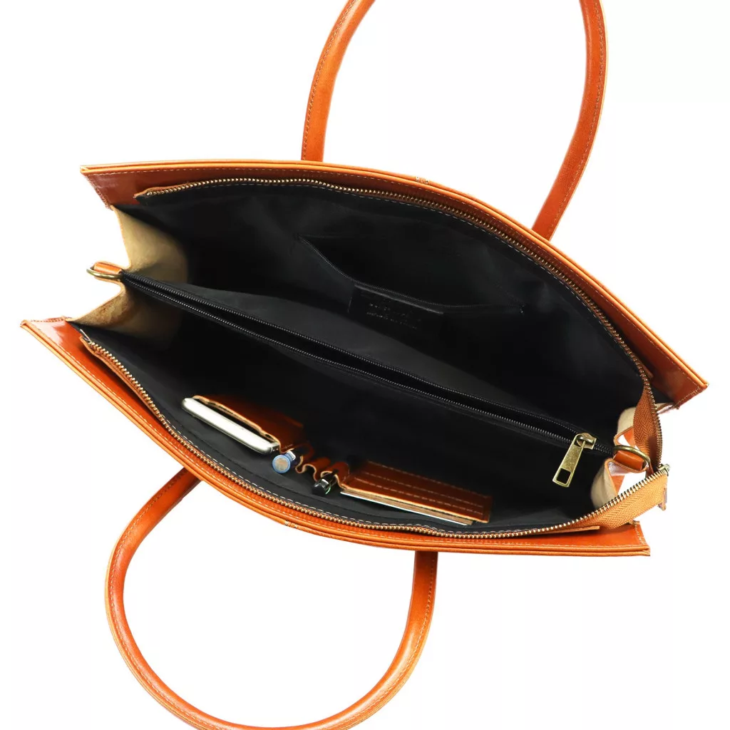 A Florence 1028 konyakbarna női bőr aktatáska elegáns, üzleties megjelenésével és strukturált kialakításával kifinomult kiegészítő munkához és hivatalos alkalmakhoz. Határozott formája és arányos mérete professzionális összhatást biztosít, miközben praktikus használatot kínál a mindennapok során.