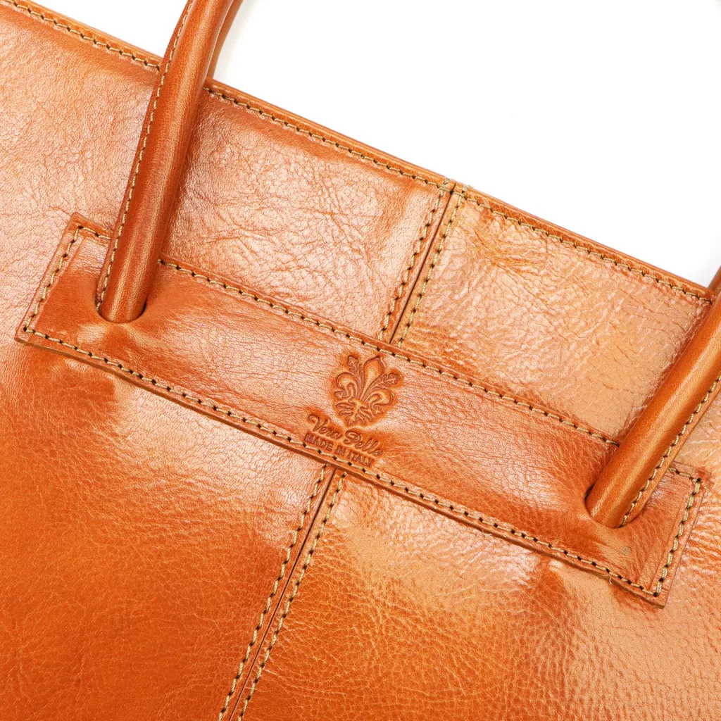 A táska prémium minőségű, selyemfényű marhabőrből készült. Sima, finoman fénylő felülete eleganciát sugároz, a természetes bőr pedig tartósságot és időtálló minőséget biztosít. A konyakbarna szín a feng shui szerint a föld elemhez kapcsolódik, a stabilitás, biztonság és megbízhatóság jelképe. Meleg tónusa kiegyensúlyozott, magabiztos megjelenést ad, miközben klasszikus, üzleties karaktert kölcsönöz a táskának. A dombornyomott márkajelzés diszkrét részletként jelenik meg, a szegecses talpazat pedig védi a táskát lehelyezéskor.