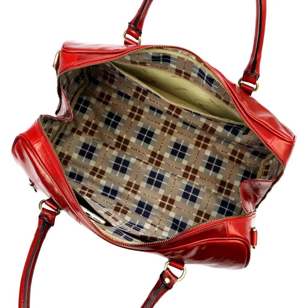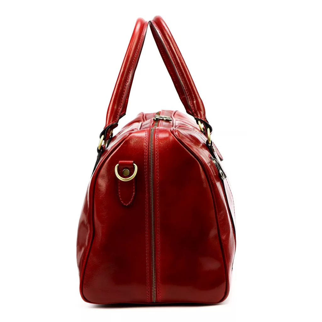 Karakteres, elegáns és magabiztos megjelenés. A piros marhabőr, az időtálló utazótáska forma és a praktikus részletek markáns, mégis kifinomult összhatást teremtenek, amely stílusos választás rövidebb utakhoz és hétvégi utazásokhoz.