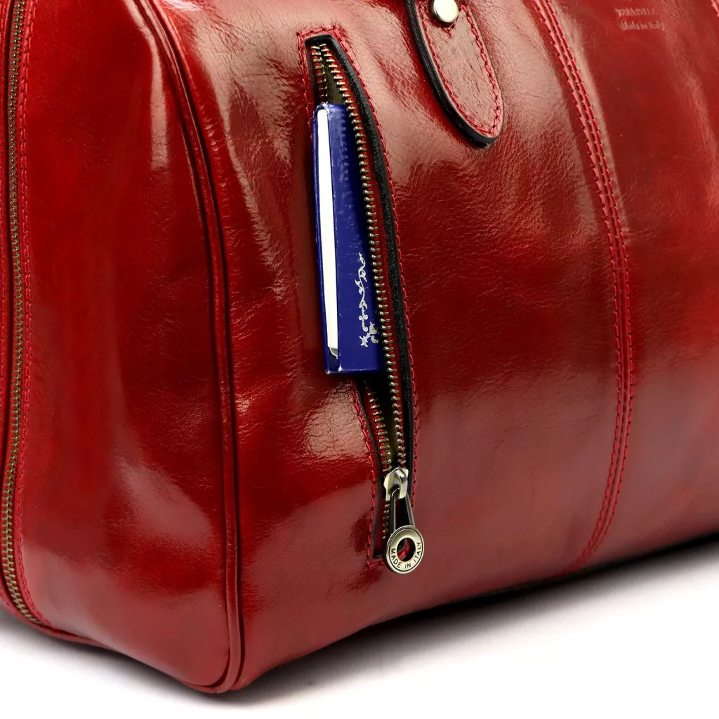 A Gregorio 133 piros uniszex bőr utazótáska határozott, karakteres megjelenésével feltűnő, mégis időtálló alternatívát kínál a klasszikus színek mellett. Klasszikus utazótáska formája jól pakolható, arányos kialakítása rövidebb utazásokhoz, hétvégi kiruccanásokhoz vagy igényes mindennapi használathoz is ideális.