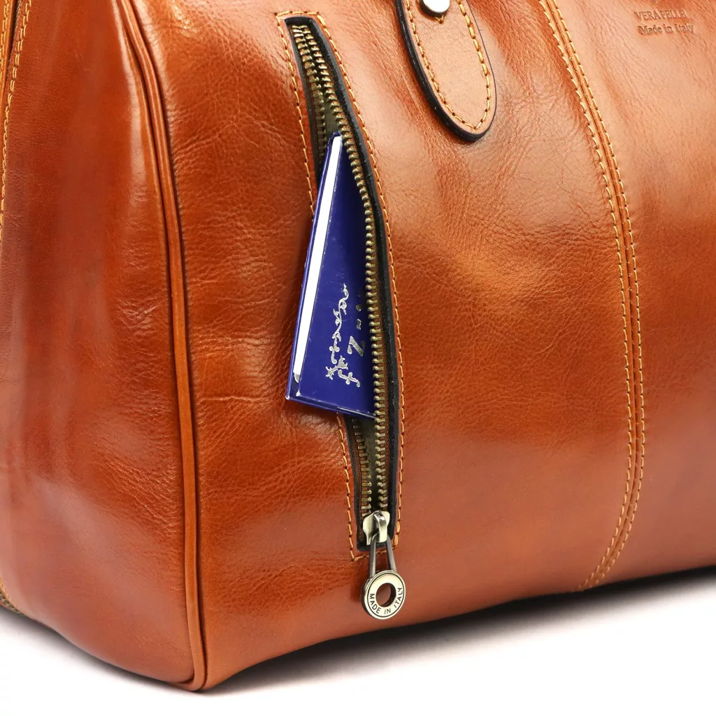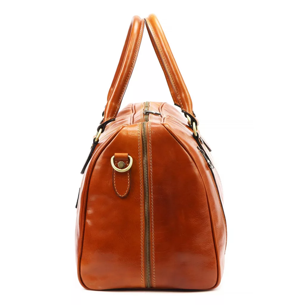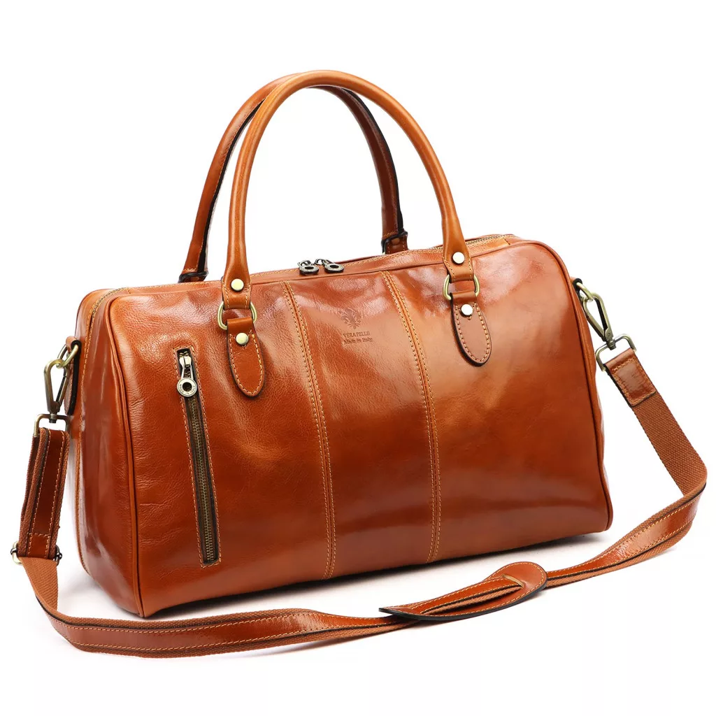 Klasszikus, elegáns és időtálló megjelenés. A konyakbarna marhabőr, az arányos utazótáska forma és a praktikus részletek harmonikus összhangot alkotnak, amely kifinomult választás üzleti és hétvégi utazásokhoz egyaránt.