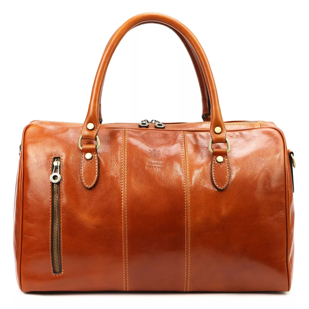 A Gregorio 133 konyakbarna uniszex bőr utazótáska klasszikus, elegáns megjelenésével és jól átgondolt kialakításával időtálló választás rövidebb utazásokhoz, hétvégi kiruccanásokhoz vagy igényes mindennapi használatra. Arányos, hagyományos utazótáska formája jól pakolható, miközben kifinomult karaktert képvisel.