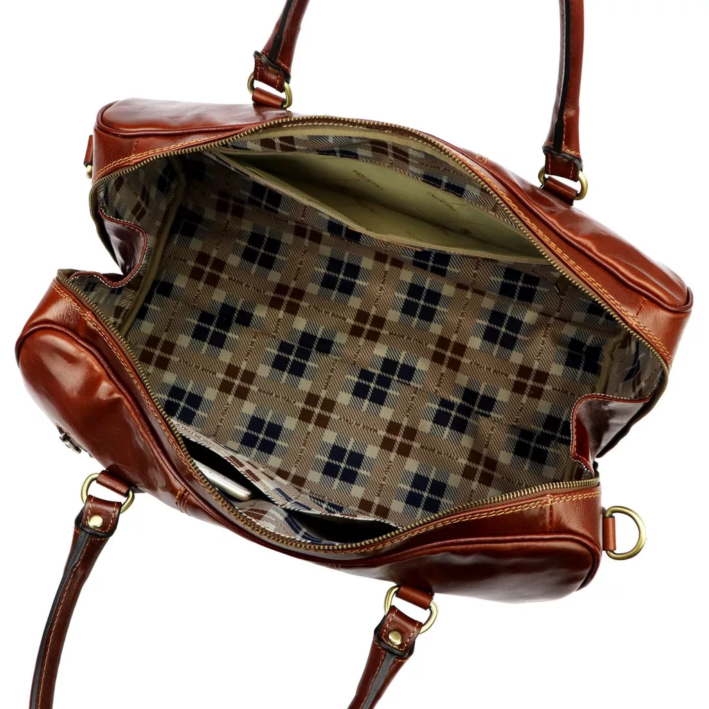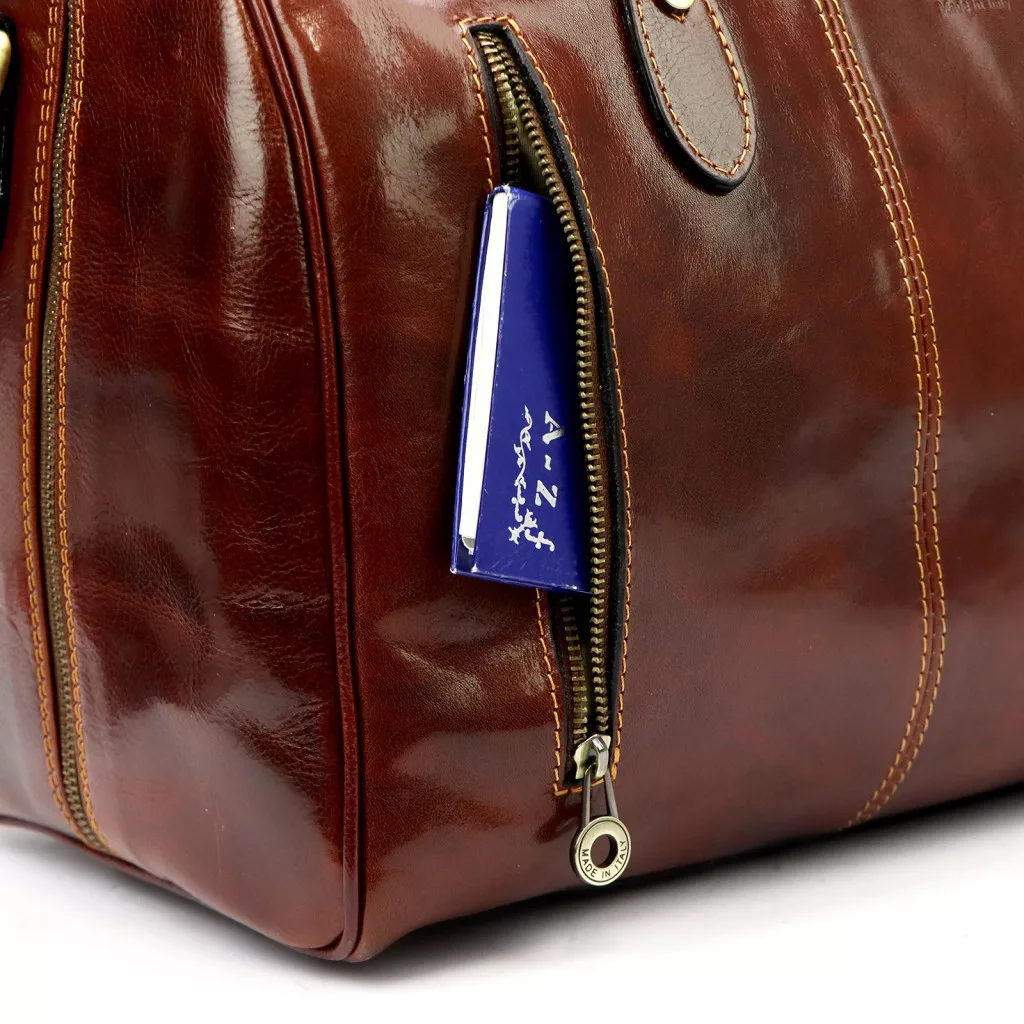 Klasszikus, elegáns és karakteres megjelenés. A meleg gesztenyebarna marhabőr, az időtálló utazótáska forma és a praktikus részletek harmonikus összhangot alkotnak, amely kifinomult választás üzleti és szabadidős utazásokhoz egyaránt.