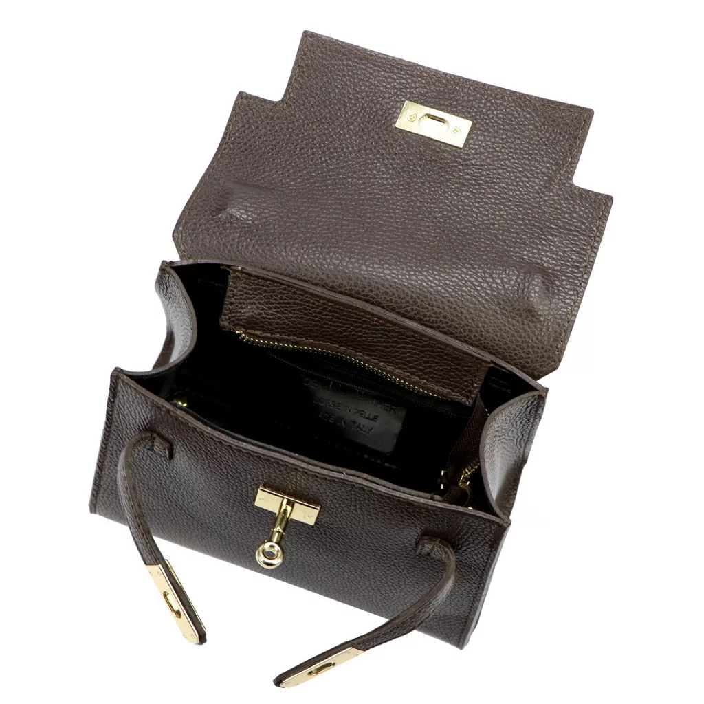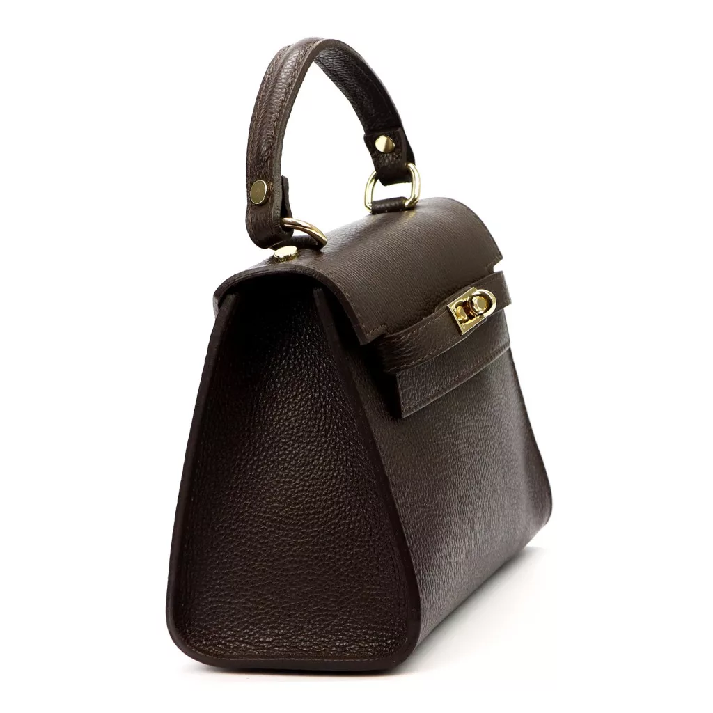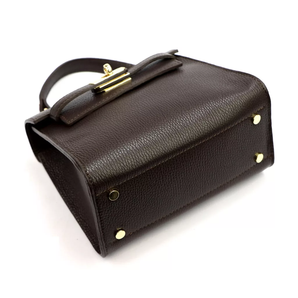 A Luka 19-17 MN DOLLARO barna női kézitáska a klasszikus elegancia és a modern funkcionalitás kifinomult találkozása. A modell prémium minőségű, szemcsés felületű marhabőrből készült, amely tartós, formáját szépen megtartó anyag, és természetes fényével a luxus érzetét kelti. Hermes stílusú kialakítása és a jellegzetes forgózáras, lehajtható fedél időtlen, ikonikus megjelenést biztosít, így ez a táska tökéletes választás azok számára, akik szeretik a karakteres, mégis elegáns darabokat.