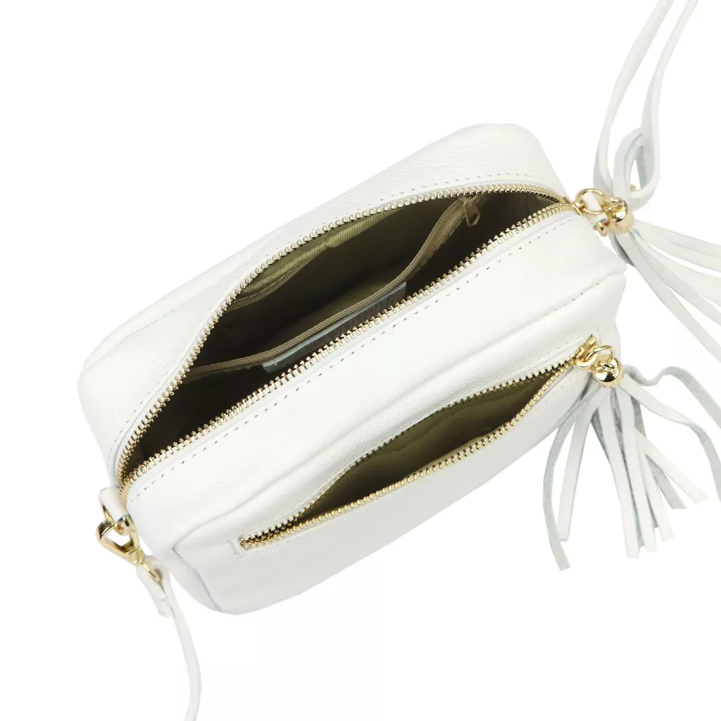 A táska prémium minőségű, valódi marhabőrből készült, amely tartósságot és kifinomult eleganciát garantál. A fehér szín a feng shui szerint a tisztaságot, az új kezdeteket és a harmóniát szimbolizálja, így friss és elegáns kiegészítője lehet bármely öltözéknek.