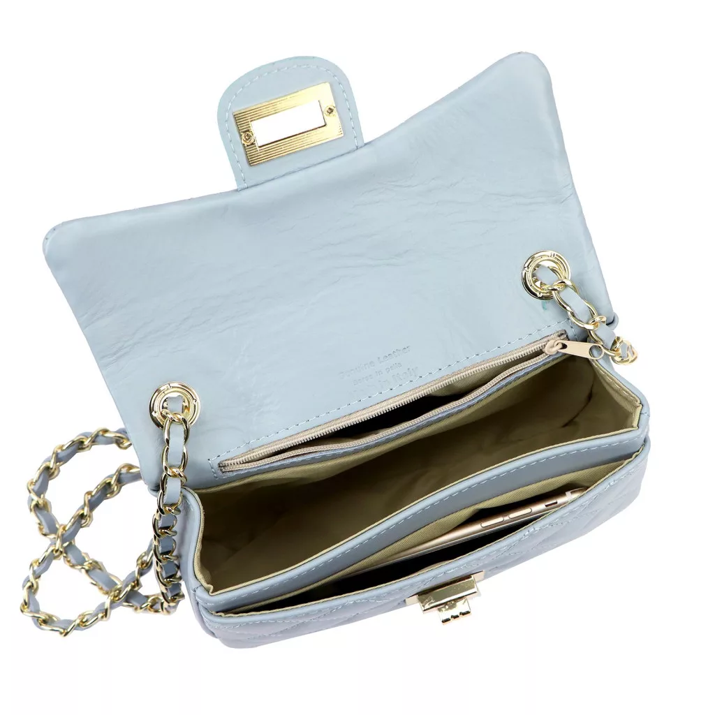 A táska prémium minőségű, valódi marhabőrből készült, amely tartósságot és kifinomult eleganciát garantál. A babakék szín a feng shui szerint a nyugalmat, a tisztaságot és a harmóniát szimbolizálja, így friss és légies kiegészítője lehet bármely öltözéknek.