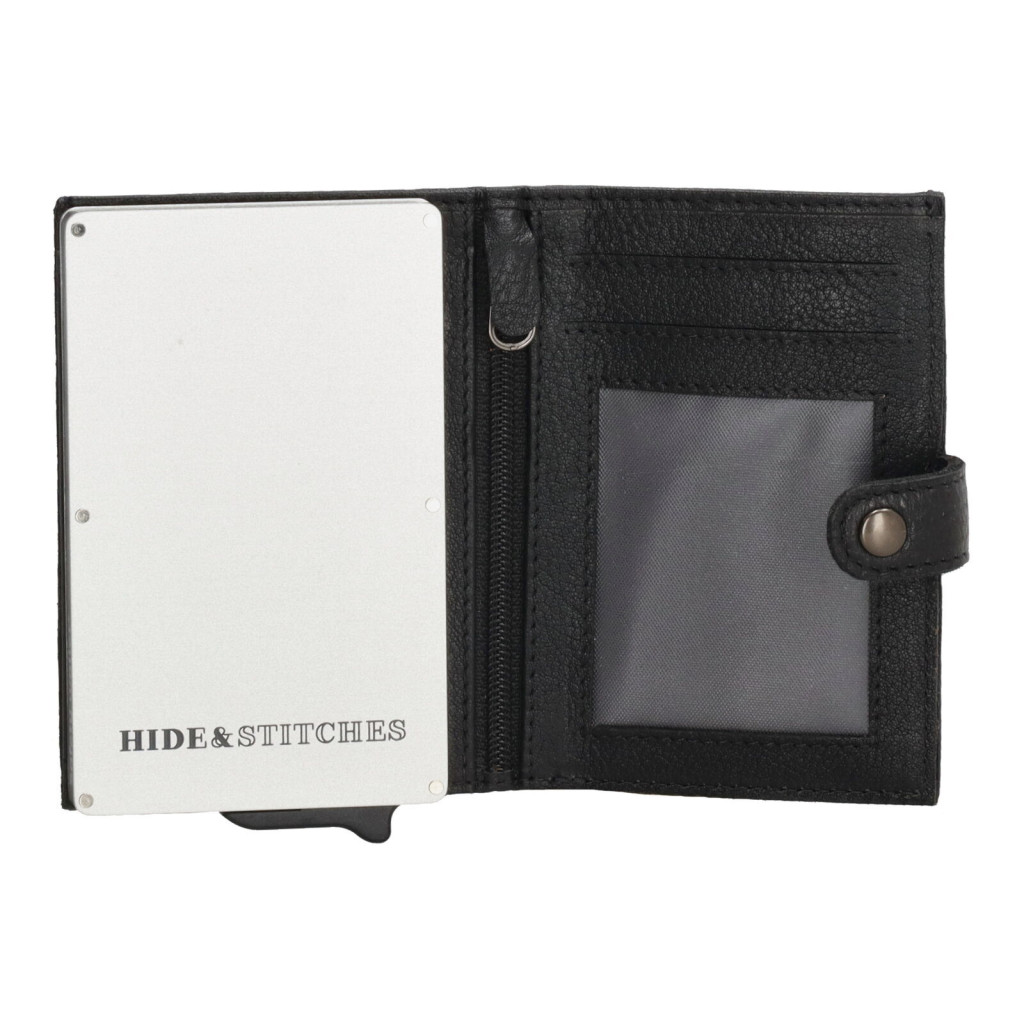 Hide and Stitches fekete pop-up bankkártyatartó 10 × 7 cm