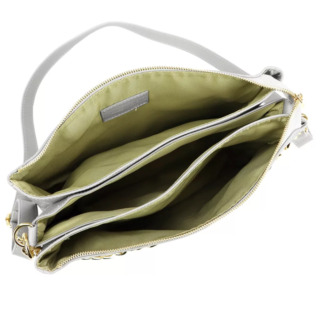 A Luka 23-007 szürke bőr kézitáska, válltáska minőségi olasz bőrrel, praktikus rekeszeivel és modern megjelenésével minden nő ruhatárának stílusos kiegészítője.