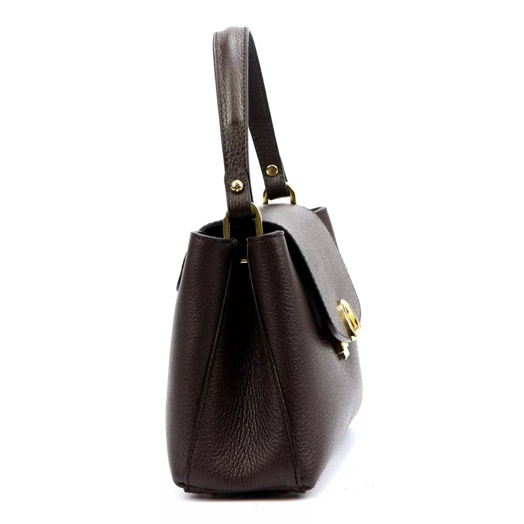 A Luka 24-036 DOLLARO női kézitáska a klasszikus elegancia és a modern praktikum találkozása. Prémium minőségű, valódi marhabőrből készült, amely enyhén strukturált felületével és természetes fényével a minőségi bőrtermékekre jellemző tartósságot és kifinomultságot kínálja. A mélybarna árnyalat időtlen és nőies, amely a föld színeinek meleg harmóniáját viszi a mindennapi megjelenésbe.