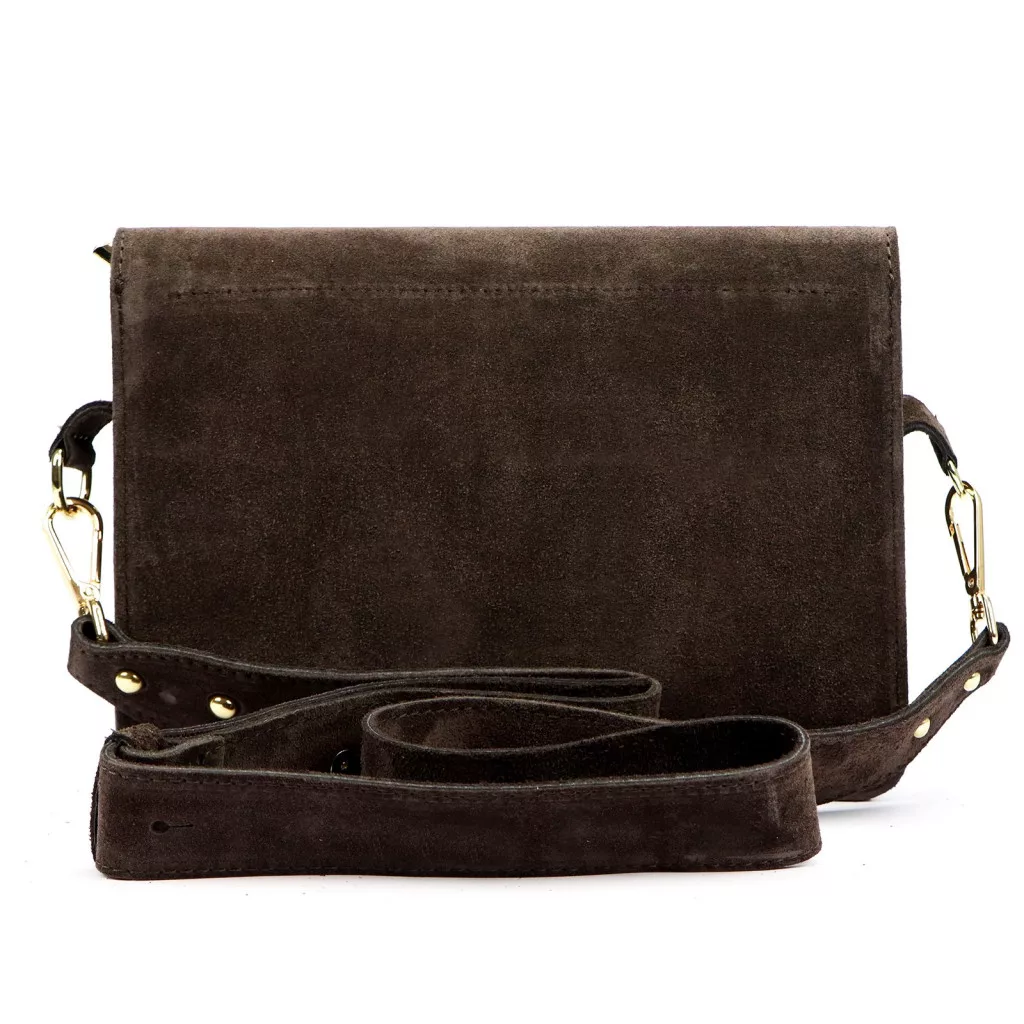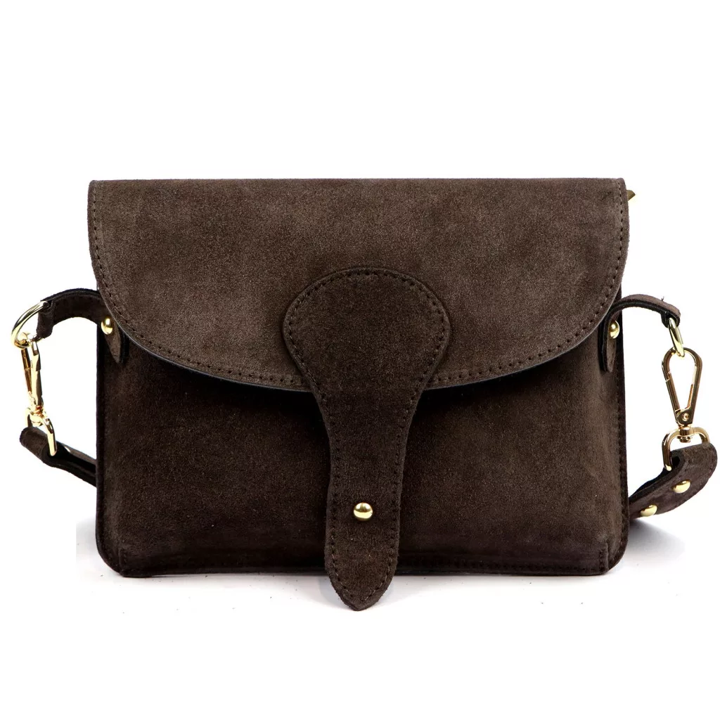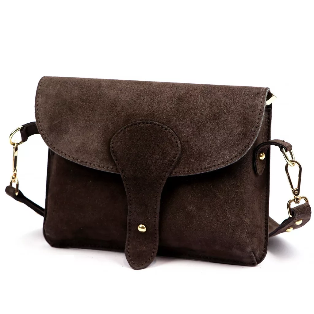 Luka 24-071 D INSTAGRAMKA sötétbarna női velúr bőr oldaltáska 24.5 x 18 x 6 cm