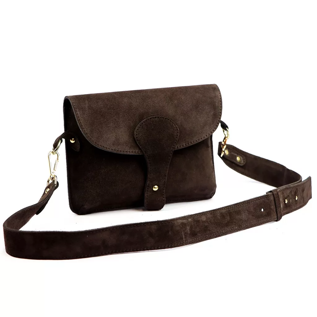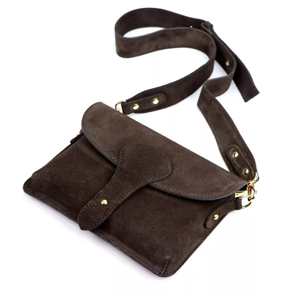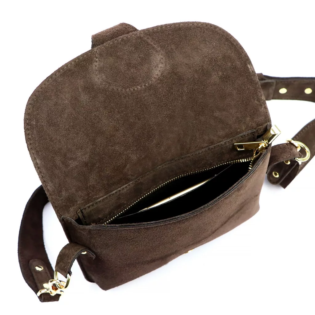 Luka 24-071 D INSTAGRAMKA sötétbarna női velúr bőr oldaltáska 24.5 x 18 x 6 cm