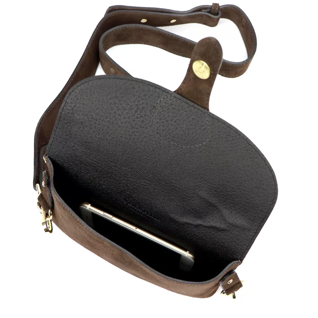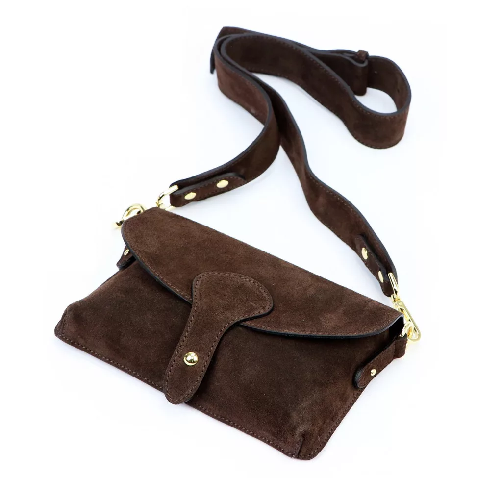 • klasszikus barna árnyalatú, prémium velúr bőr válltáskát keresnek