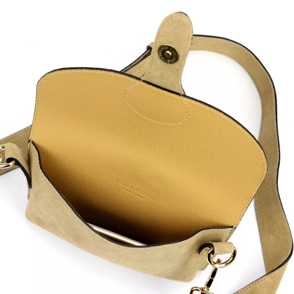 A táska prémium minőségű velúr marhabőrből készült, amely puha tapintású, matt felületével kifinomult és luxus hatású megjelenést biztosít. A homokszín a feng shui szerint a stabilitást, a biztonságot és a természetes harmóniát jelképezi. Meleg, természetes árnyalata elegáns és könnyen kombinálható különböző stílusú öltözékekkel.
