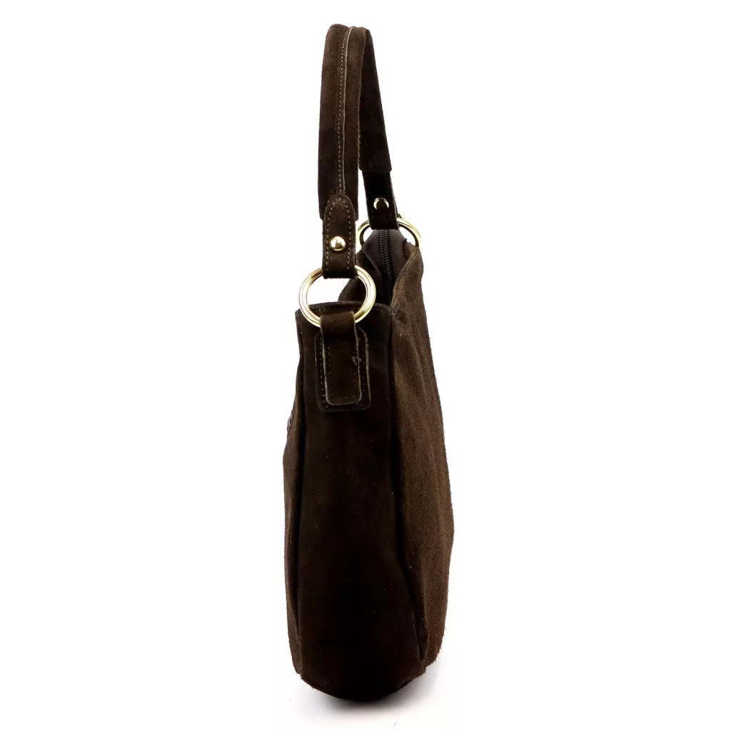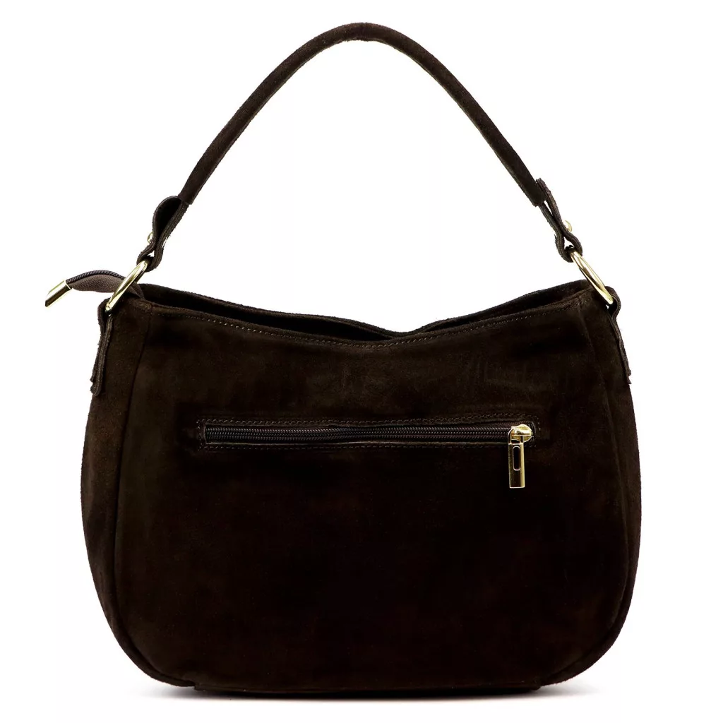 A Luka 24-085 GOLD női kézitáska finom eleganciát és mindennapi praktikusságot kínál. Prémium minőségű velúr marhabőrből készült, amely puha tapintású és természetes megjelenésű. A sötétbarna árnyalat mély, klasszikus tónus, amely a földszínek melegségét és a stabilitást idézi – a feng shui szerint ez a szín a biztonságot és megbízhatóságot jelképezi.
