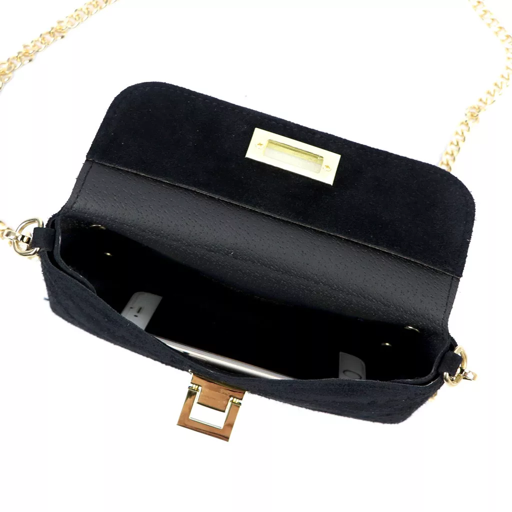 A 22 x 12.5 x 6 cm-es kompakt méret elegendő helyet kínál a legfontosabb tárgyak számára. Egy fő rekesszel és belső zsebbel rendelkezik, így könnyen rendszerezhető. A hátsó külső zseb gyors hozzáférést nyújt az apróbb holmikhoz. A klasszikus csatos zár megbízható megoldást ad, a láncos vállpánt pedig elegáns és nőies részletként emeli ki a táska stílusát.