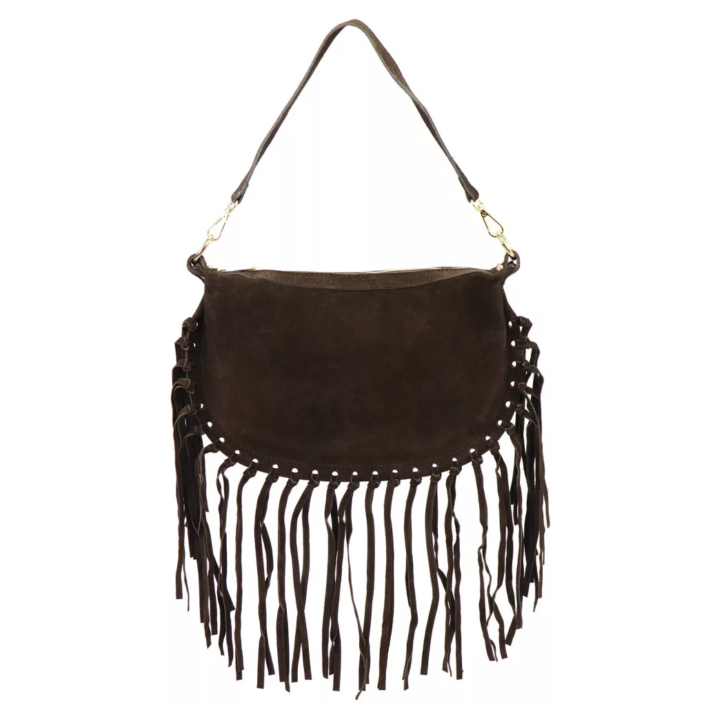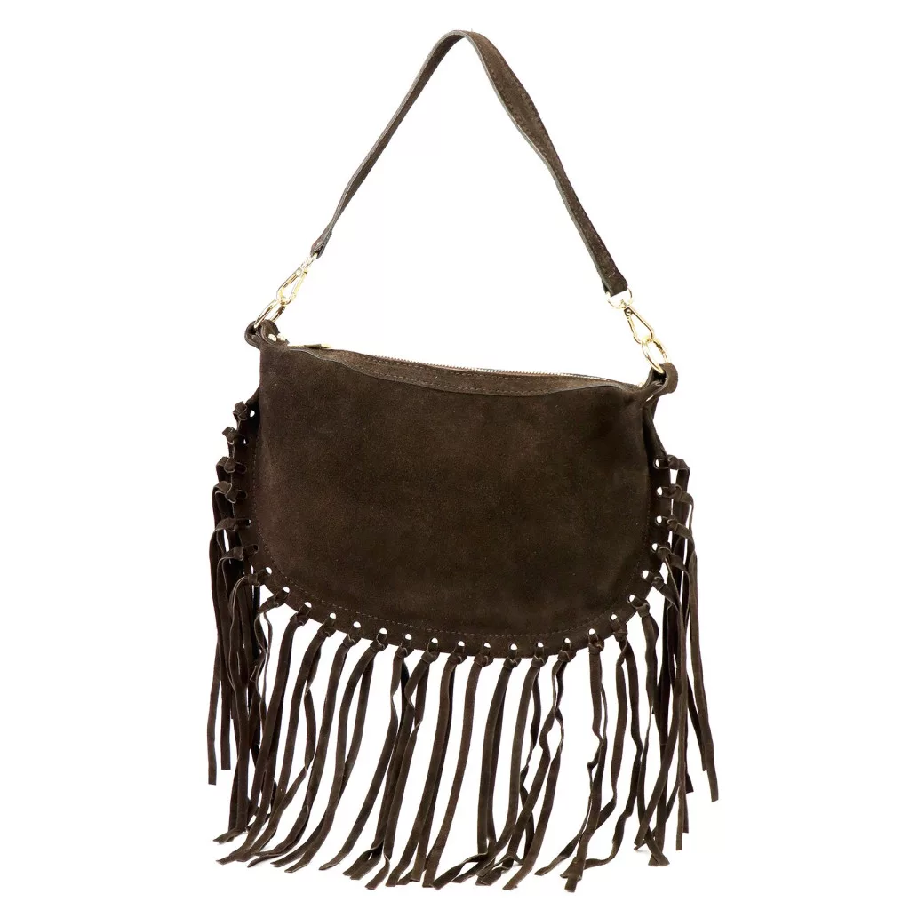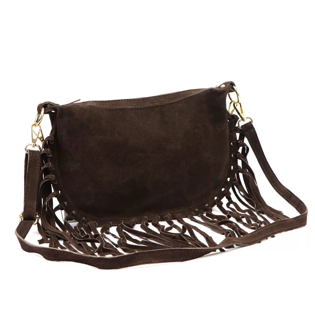 Luka 25-015 barna női velúr bőr kézitáska, válltáska – Elegancia rojtos részletekkel