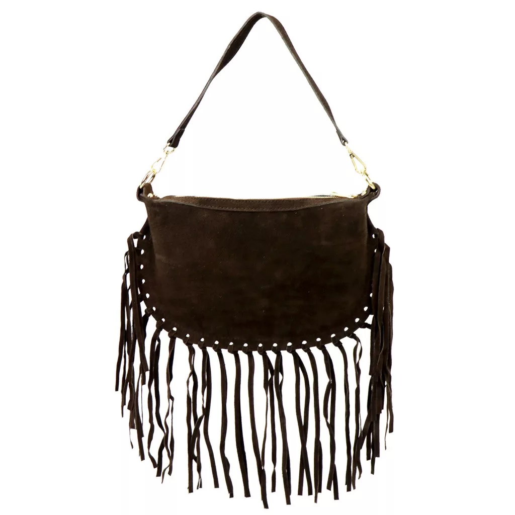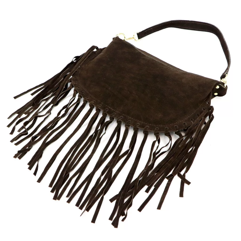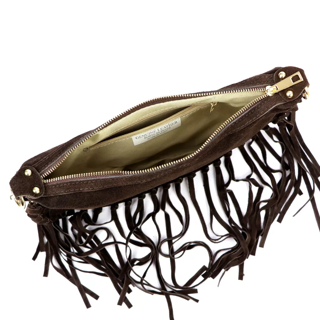 Luka 25-015 barna női velúr bőr kézitáska, válltáska – Elegancia rojtos részletekkel