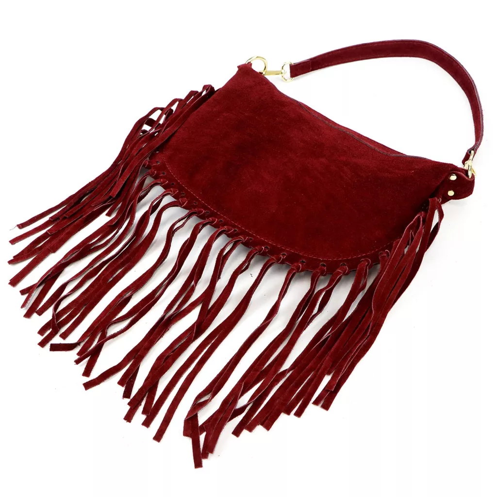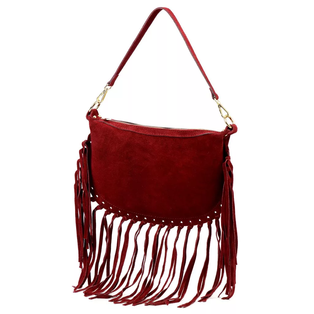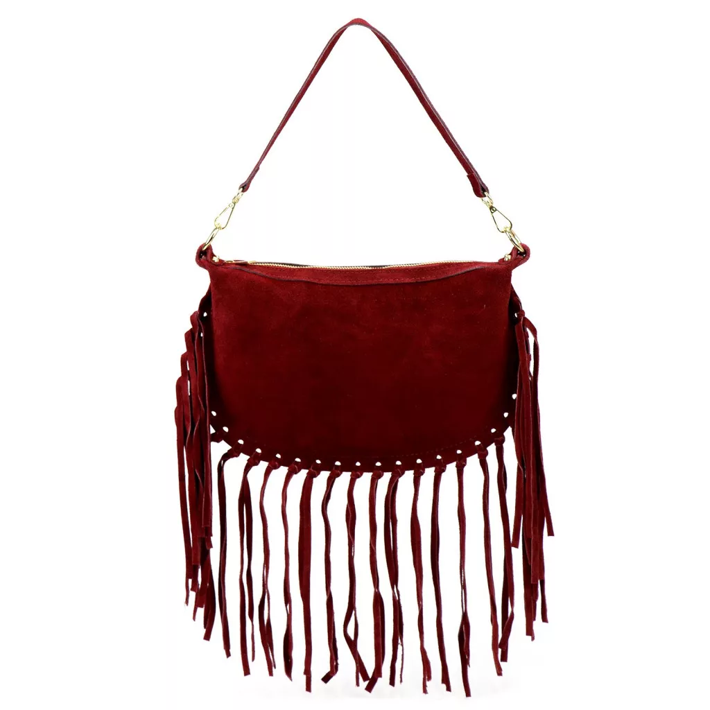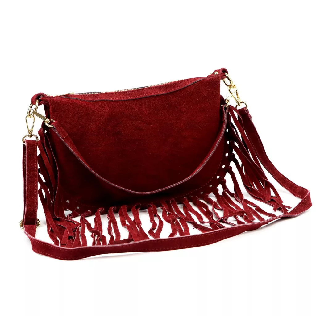 Luka 25-015 bordó női velúr bőr kézitáska, válltáska – Elegancia rojtos részletekkel
