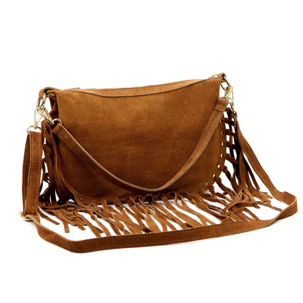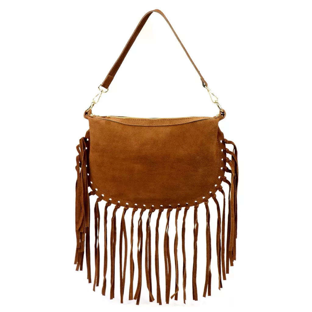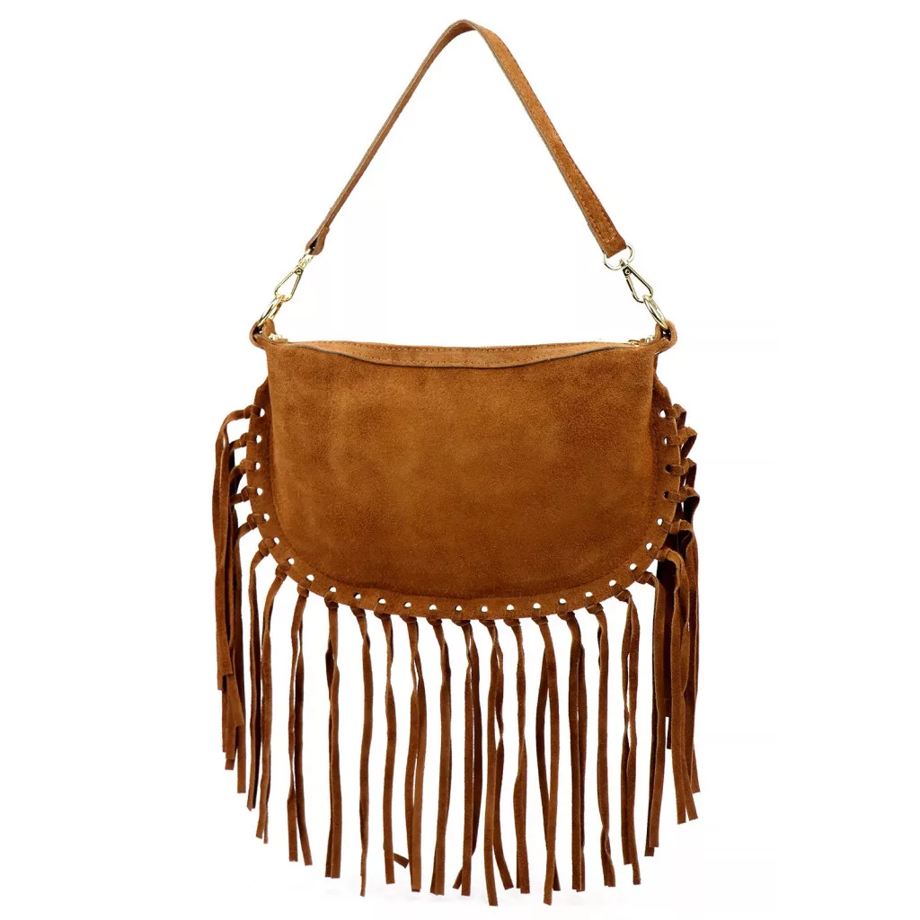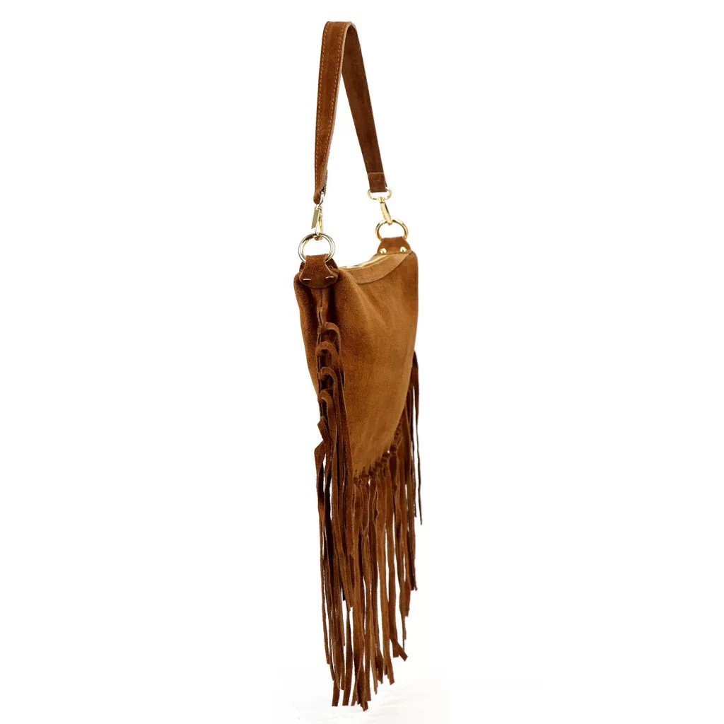 A Luka 25-015 táska a velúros marhabőr természetes szépségét és a bőr rojtok játékos, nőies mozgását ötvözi. A konyakbarna árnyalat a klasszikus őszi divat színe, amely melegséget és harmóniát visz minden összeállításba. A modell ideális választás azok számára, akik kedvelik az elegáns, mégis laza, természetes megjelenést – tökéletes kiegészítő városi mindennapokra és hétvégi programokra egyaránt.
