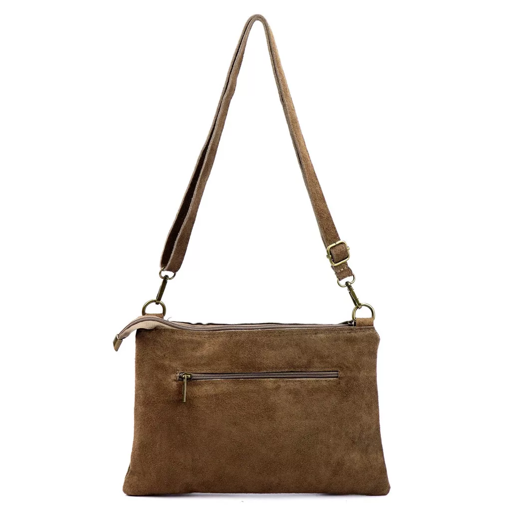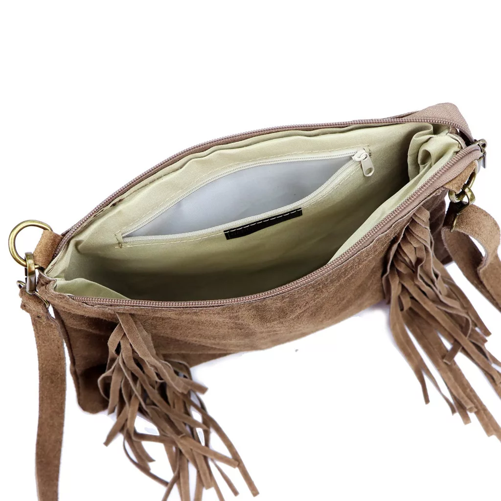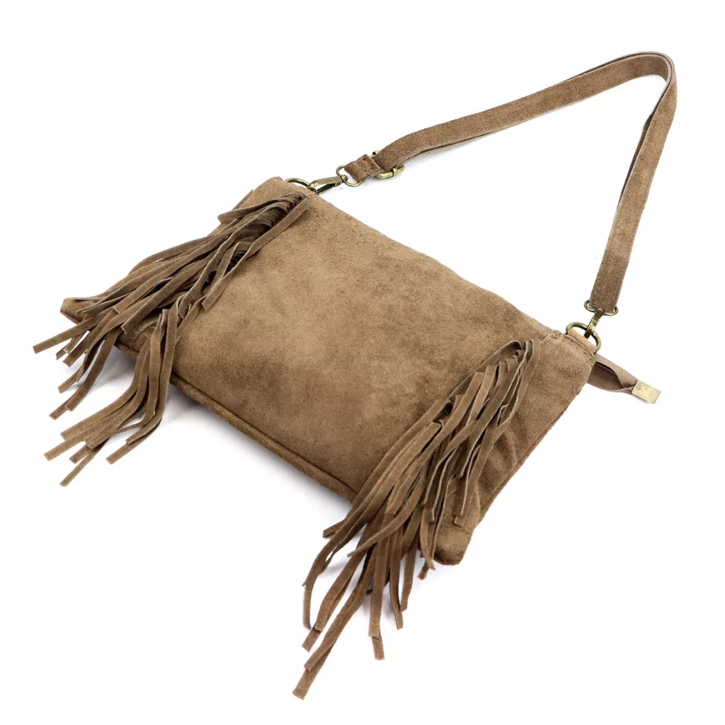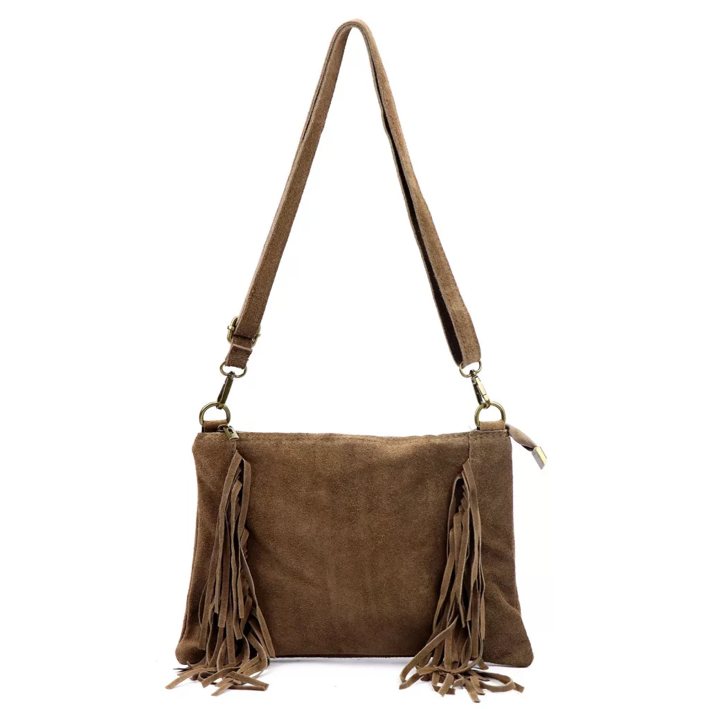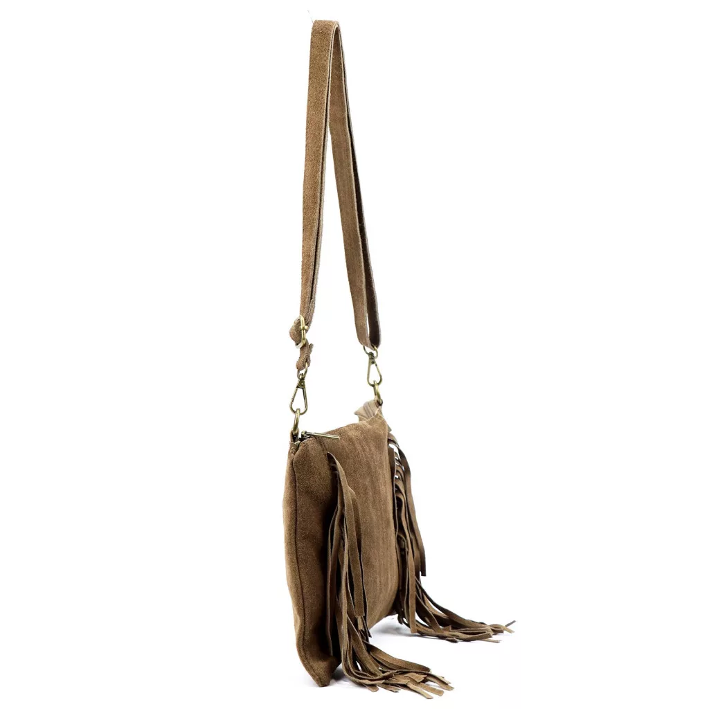 Luka 25-021 taupe női velúr bőr válltáska – Elegancia rojtos részletekkel