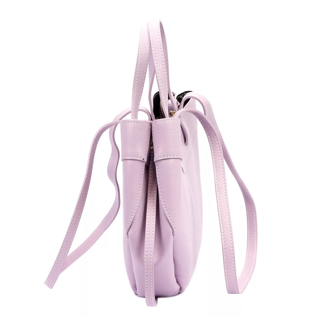 Modern, letisztult és nőies megjelenés. A strukturált, mégis lágy vonalvezetésű fazon, a finoman szemcsézett DOLLARO bőr és a levendula lila árnyalat friss, elegáns karaktert ad a táskának, amely tökéletes választás a stílusos mindennapokhoz.
