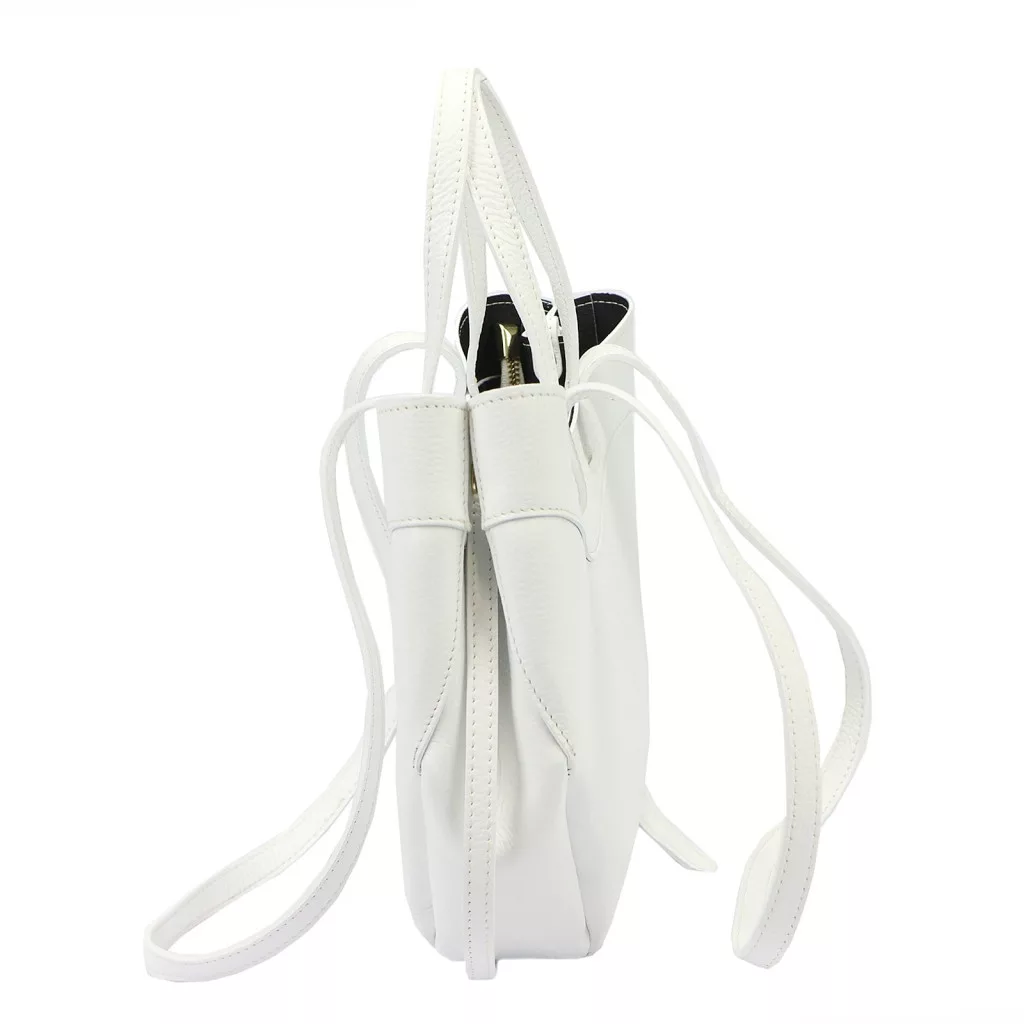 A táska prémium minőségű marhabőrből készült, DOLLARO típusú, finoman szemcsézett felülettel. Ez a bőrtípus tartós, ellenálló és elegáns textúrát ad a táskának. A fehér szín a feng shui szerint a tisztaság, az új kezdet és a harmónia jelképe. Világos, letisztult árnyalata friss és kifinomult karaktert kölcsönöz a táskának.