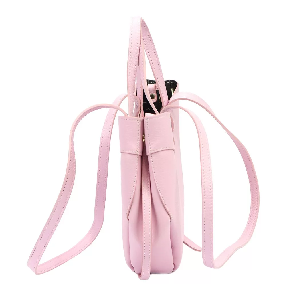 A táska prémium minőségű marhabőrből készült, DOLLARO típusú, finoman szemcsézett felülettel. Ez a bőrtípus tartós, ellenálló és elegáns textúrát ad a táskának. A pasztell rózsaszín szín a feng shui szerint a gyengédséget, a szeretetet és az érzelmi harmóniát jelképezi. Lágy, romantikus árnyalata nőies és kifinomult karaktert kölcsönöz a táskának.