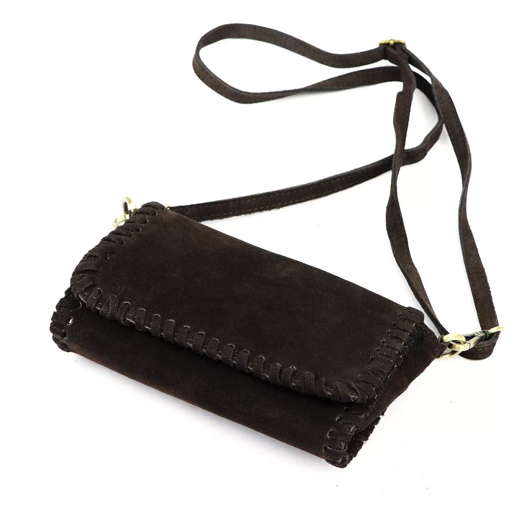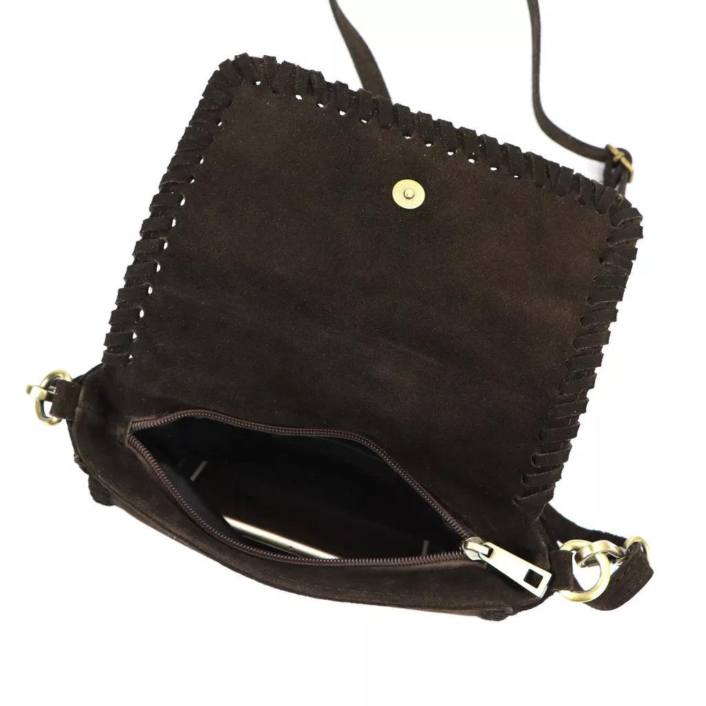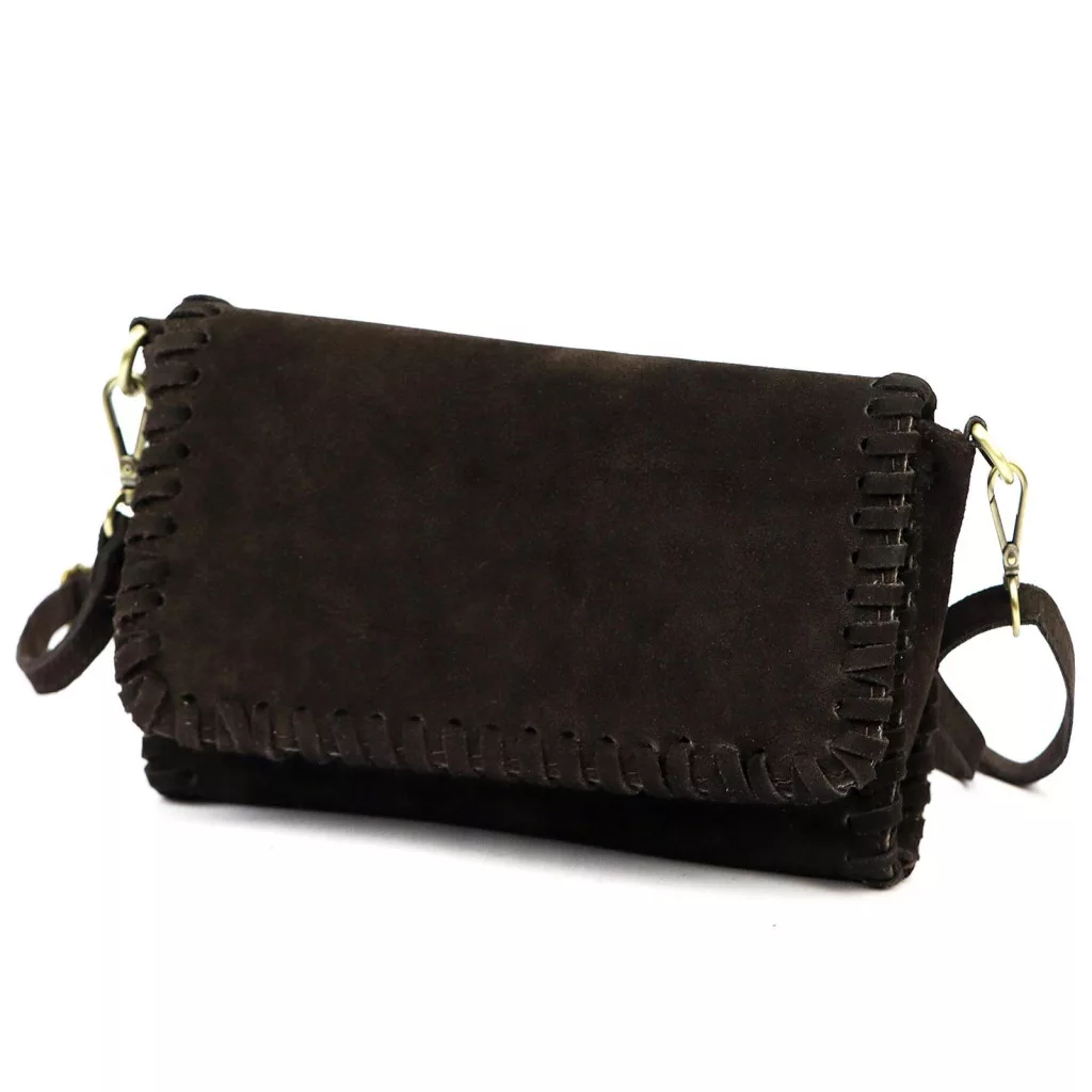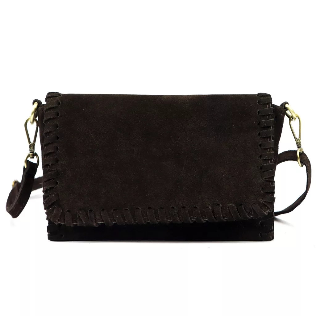 • klasszikus, sötétbarna velúr bőr válltáskát keresnek