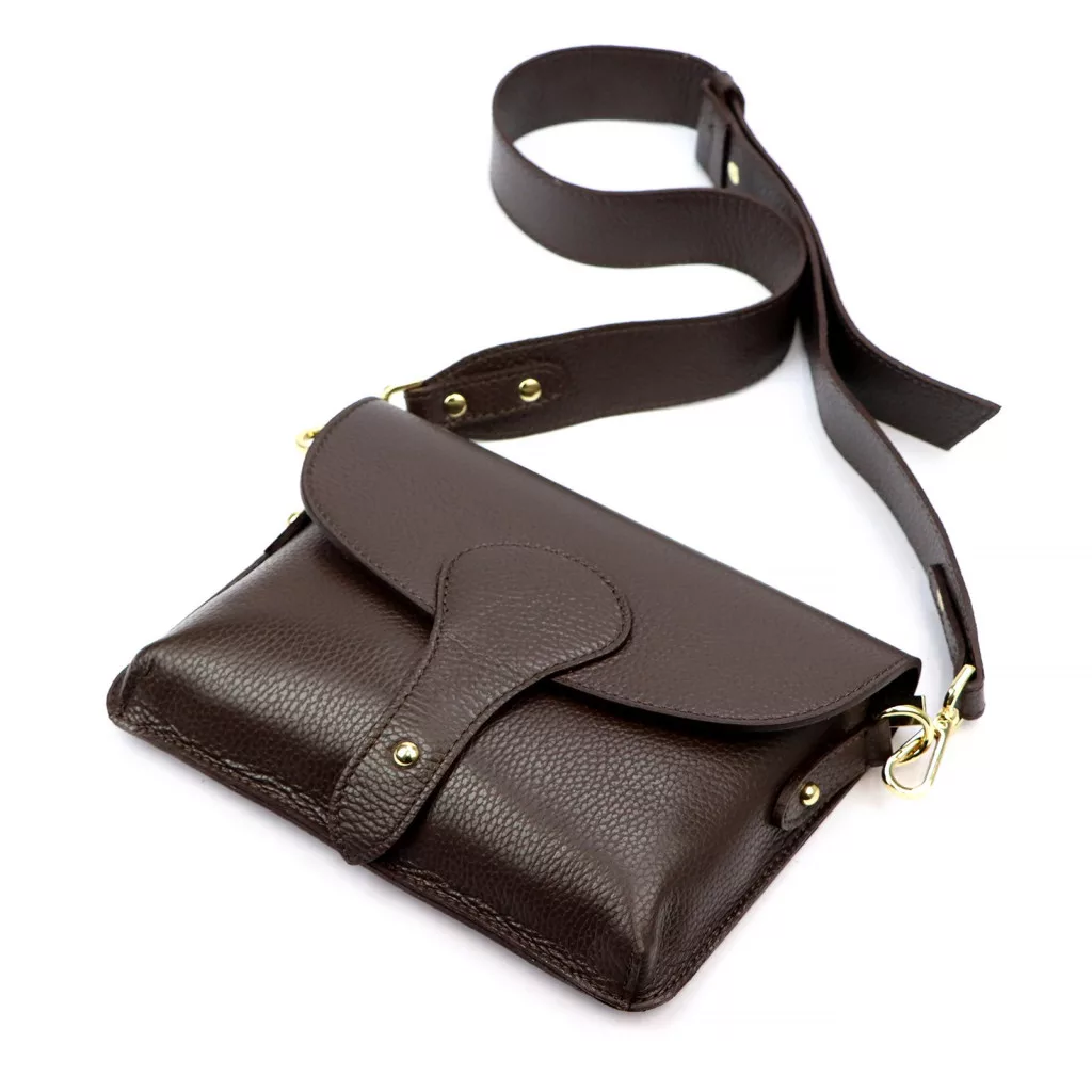 Modern, nőies és letisztult megjelenés, városi mindennapokra és elegáns hétvégi programokra is tökéletes. Kompakt mérete ideális alapdarab azoknak, akik szeretik a kényelmes, mégis elegáns bőr kiegészítőket. A sötétbarna árnyalat klasszikusan sikkes választás, amely sosem megy ki a divatból.