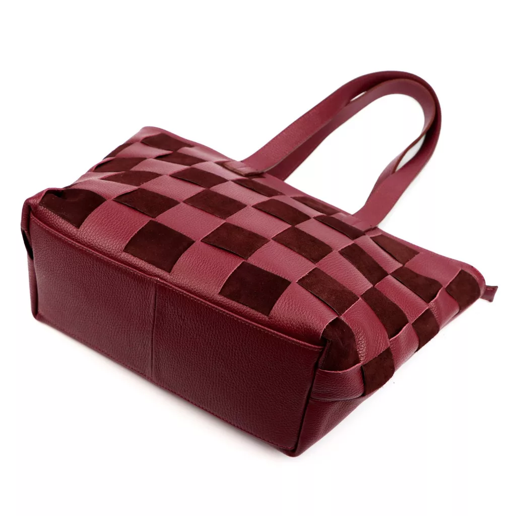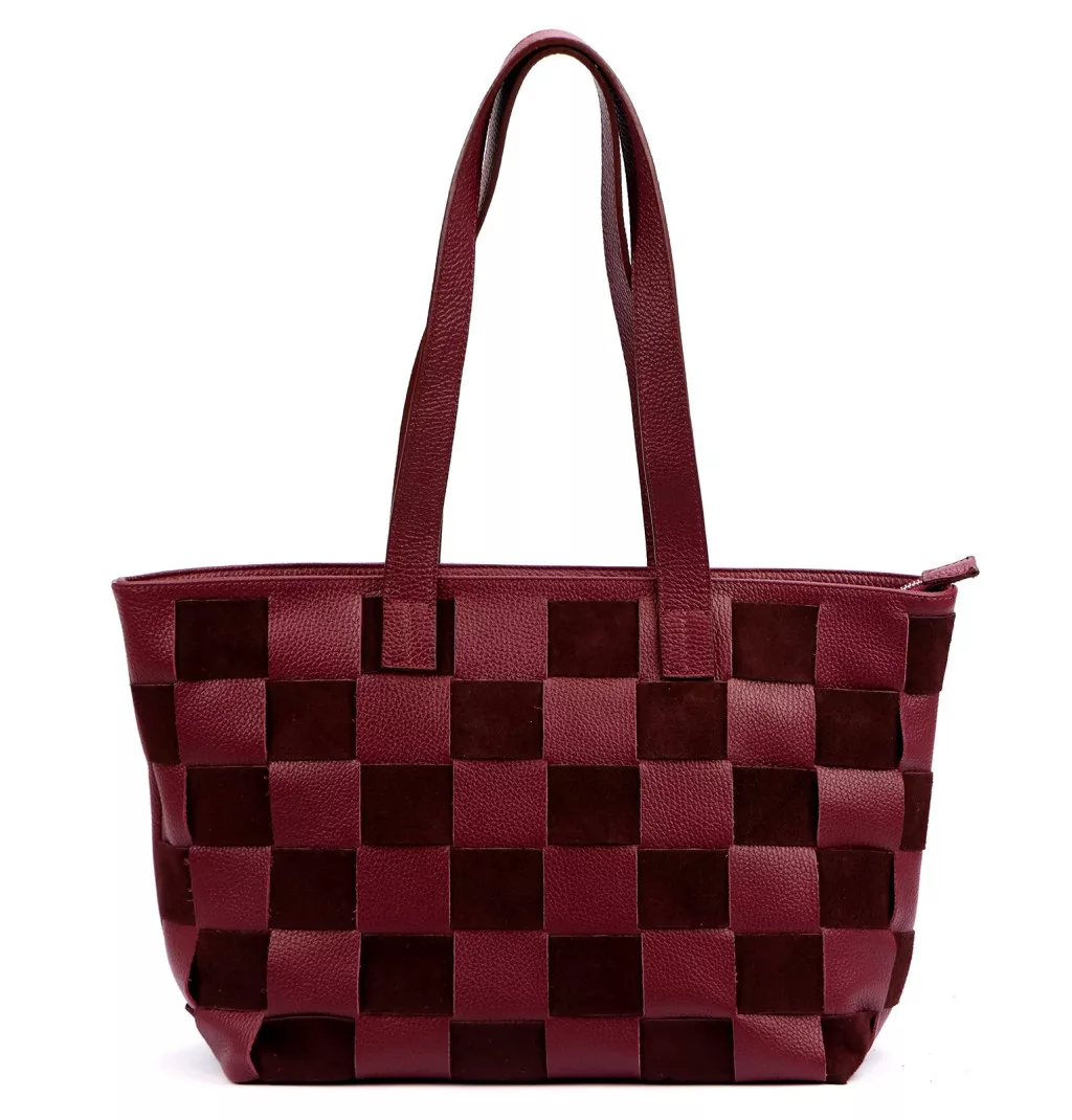 Luka 25-080 bordó-kockás női bőr válltáska 45 x 29 x 14 cm