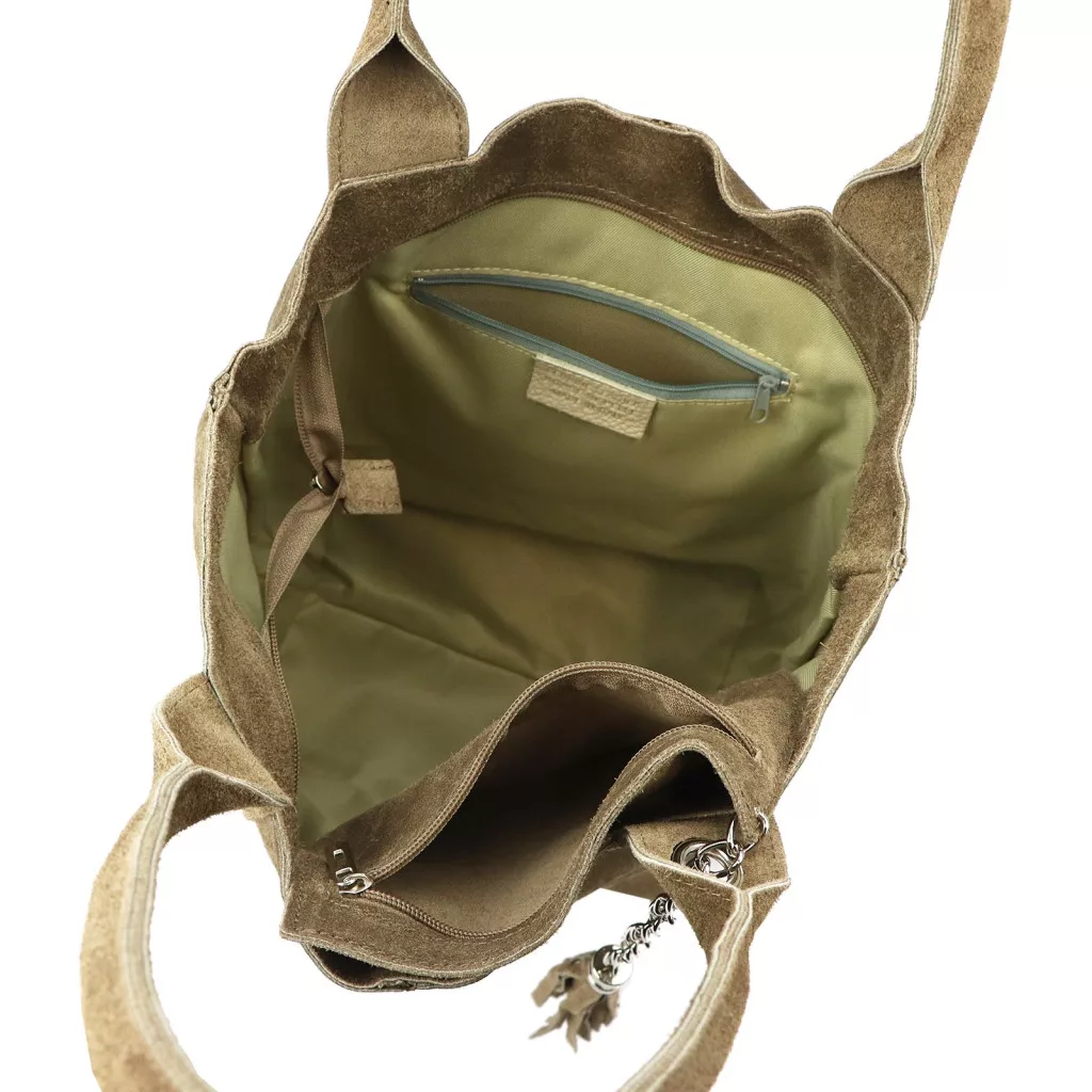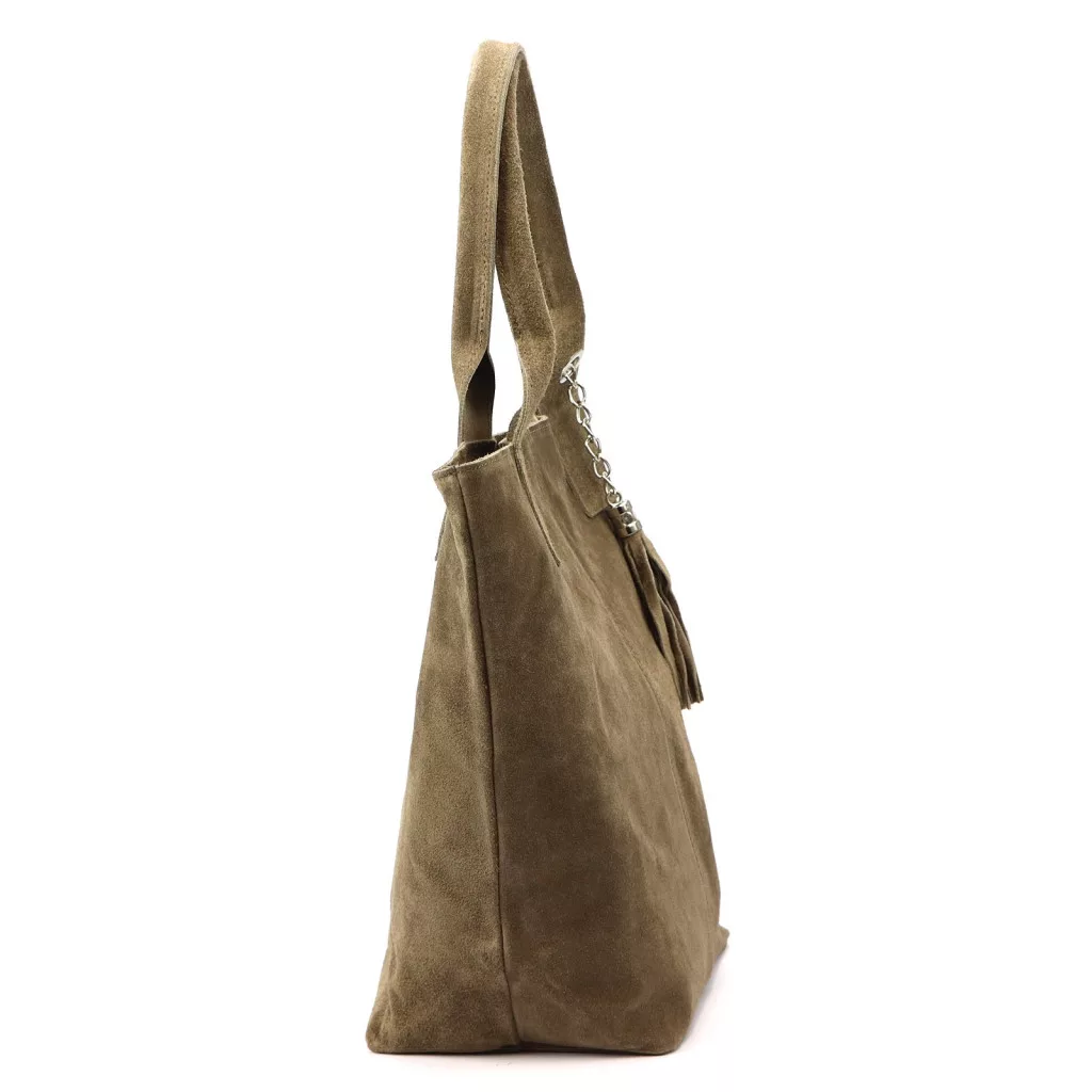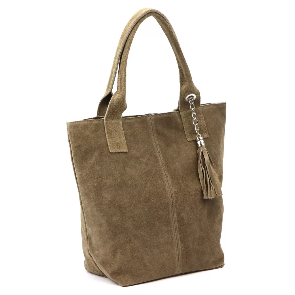 Luka 26-026 taupe női velúr bőr válltáska, shopper 40 x 35 x 18 cm