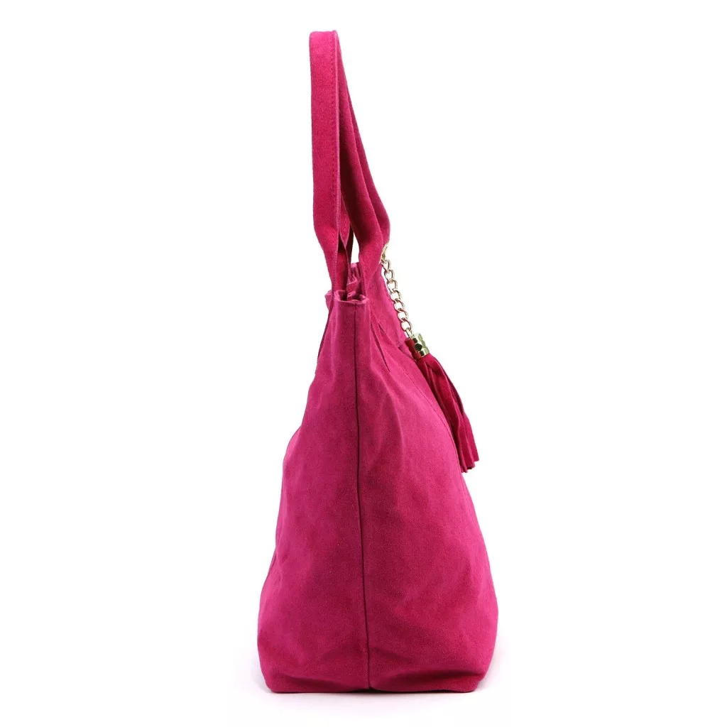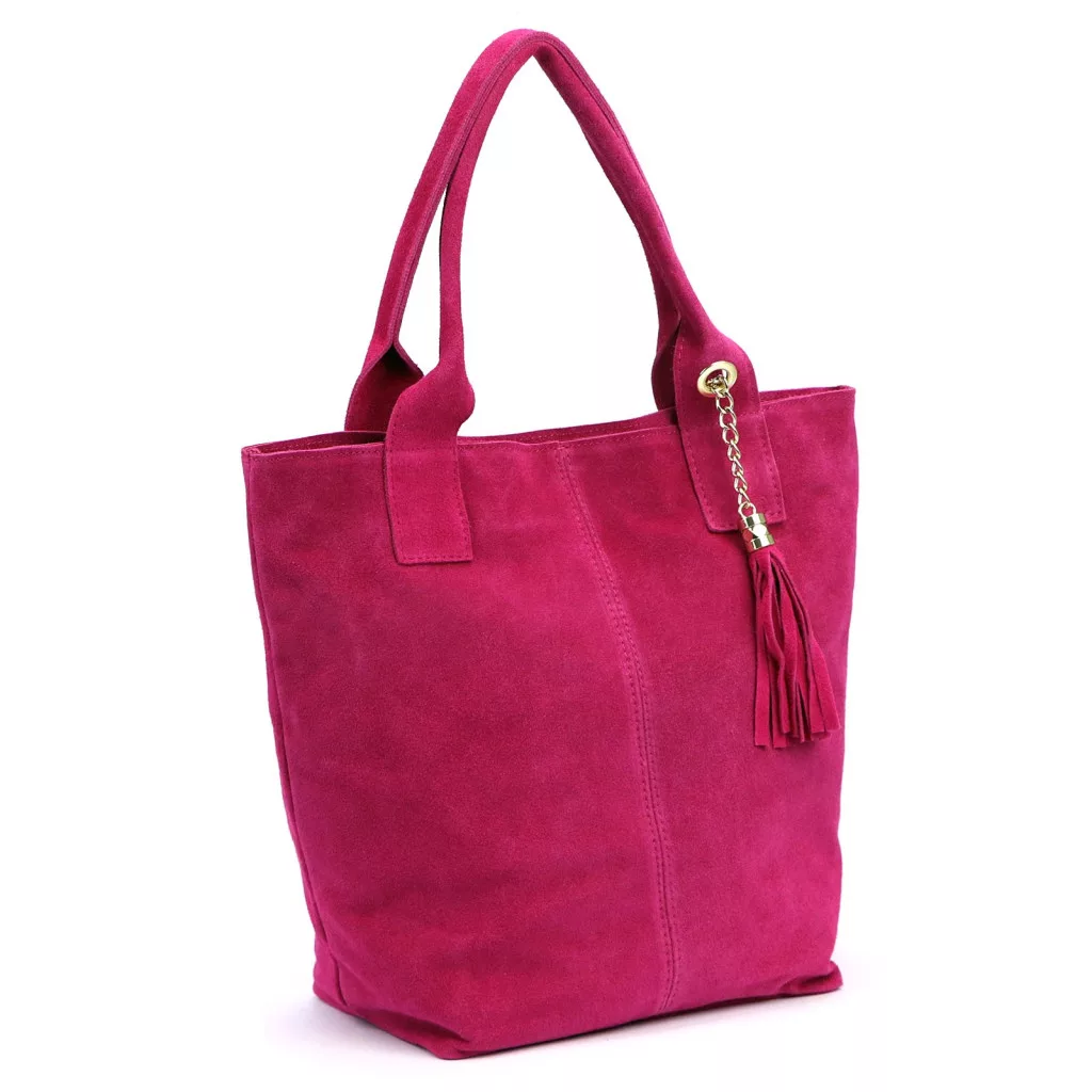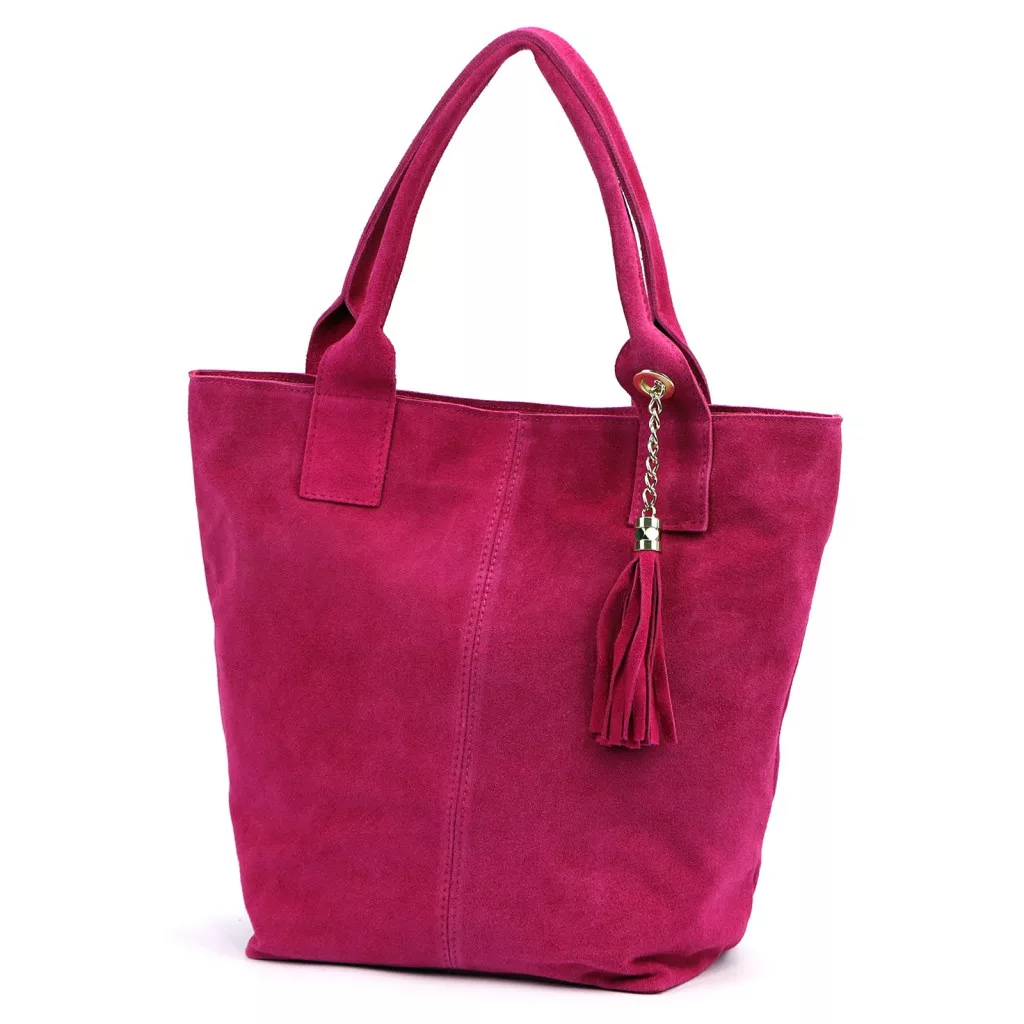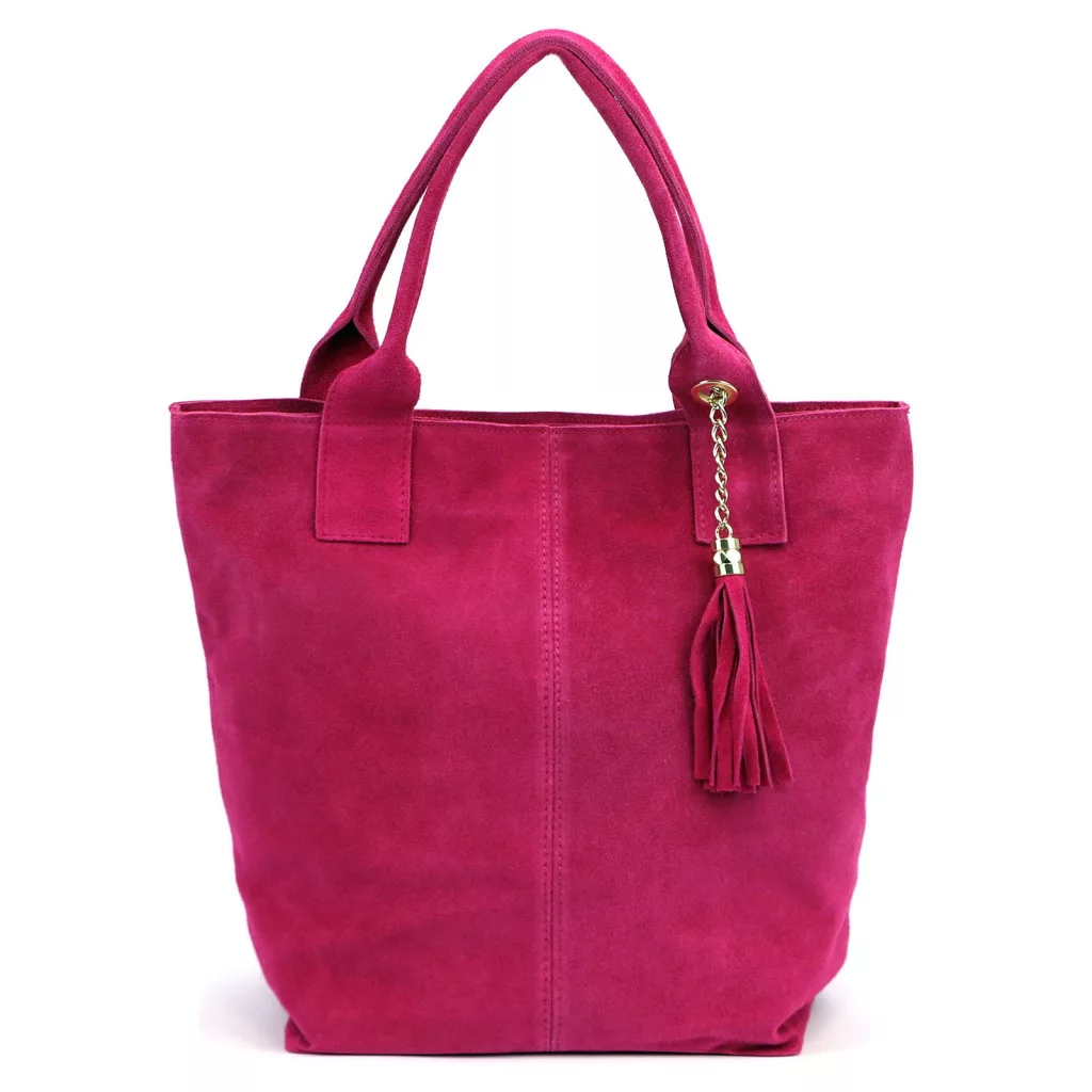 Luka 26-026 magenta női velúr bőr válltáska, shopper 40 x 37 x 13 cm