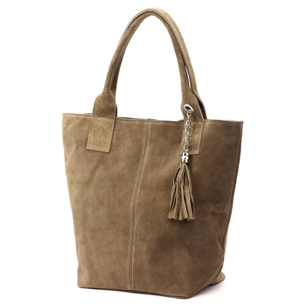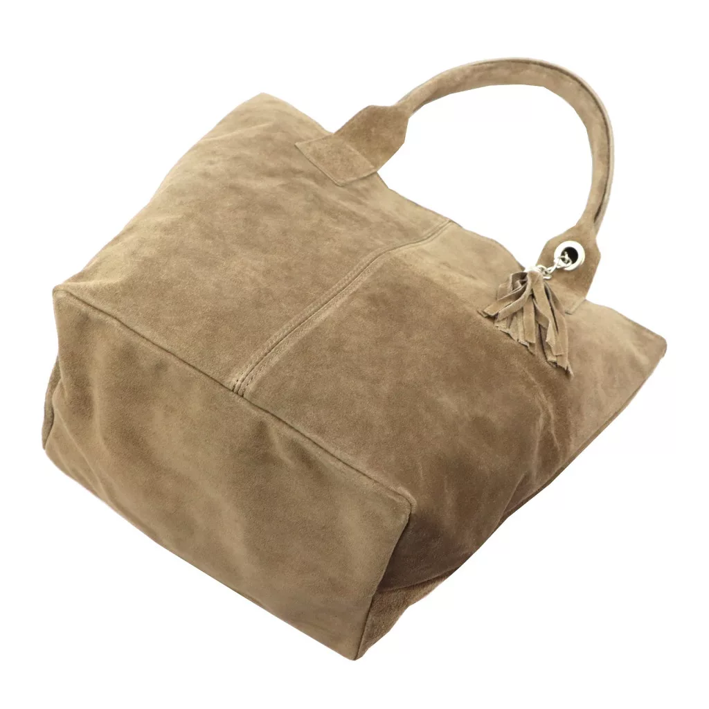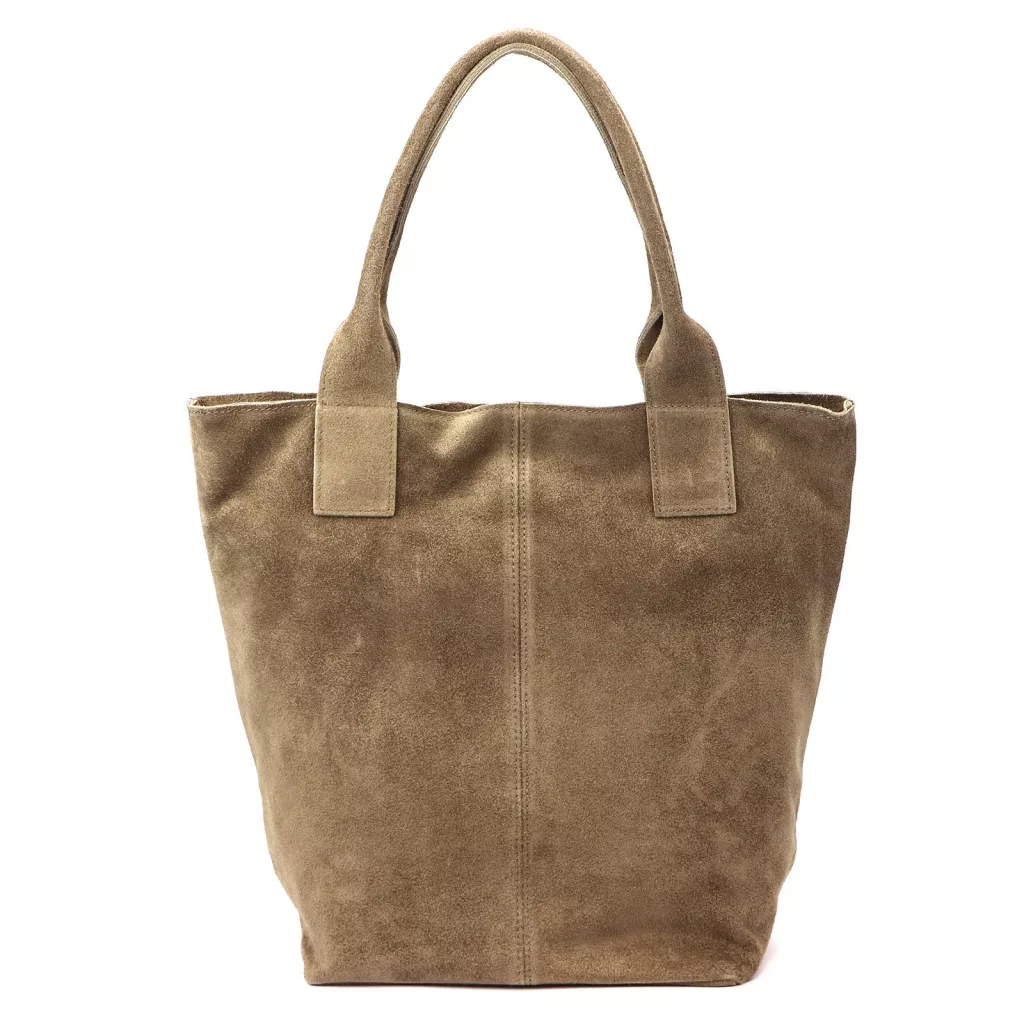 Luka 26-026 sötét bézs női velúr bőr válltáska, shopper 40 x 37 x 13 cm