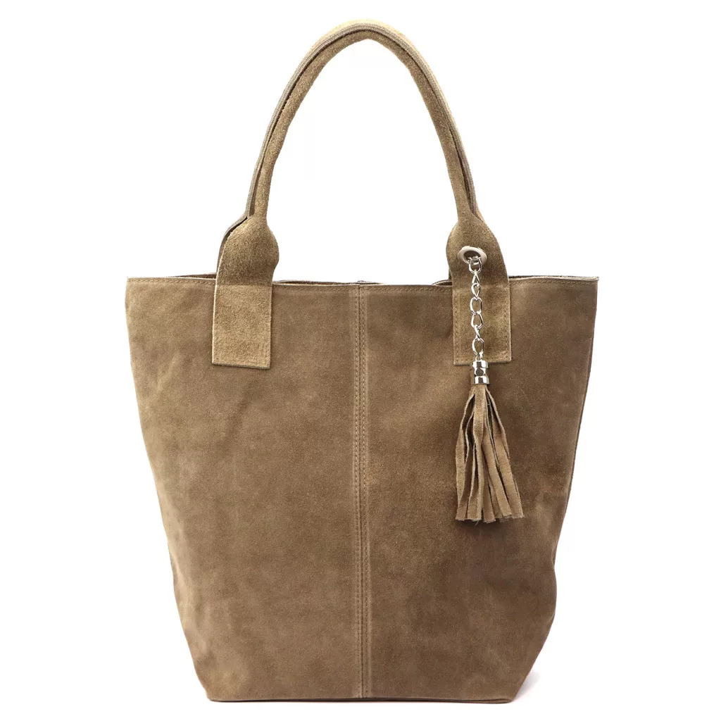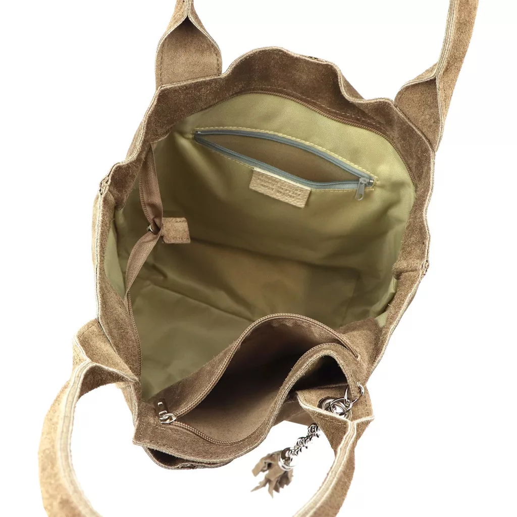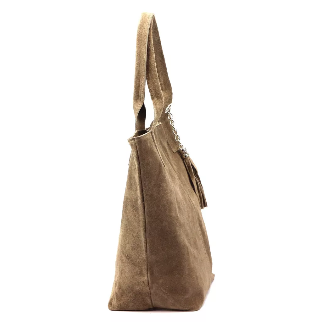 Luka 26-026 sötét bézs női velúr bőr válltáska, shopper 40 x 37 x 13 cm