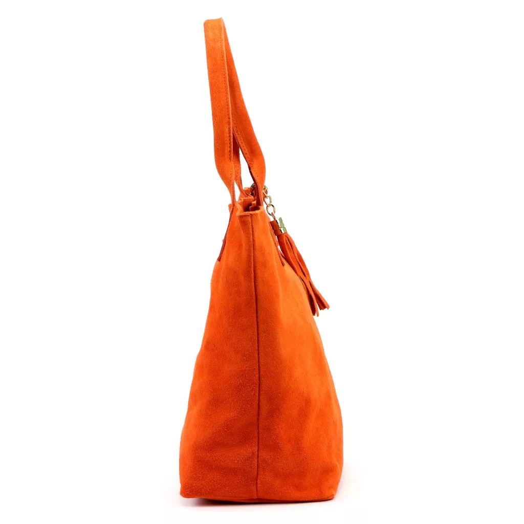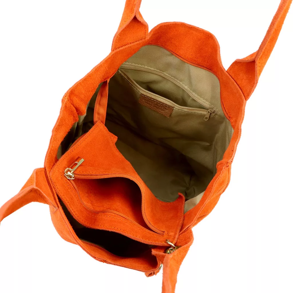 Luka 26-026 narancs női velúr bőr válltáska, shopper 40 x 35 x 18 cm