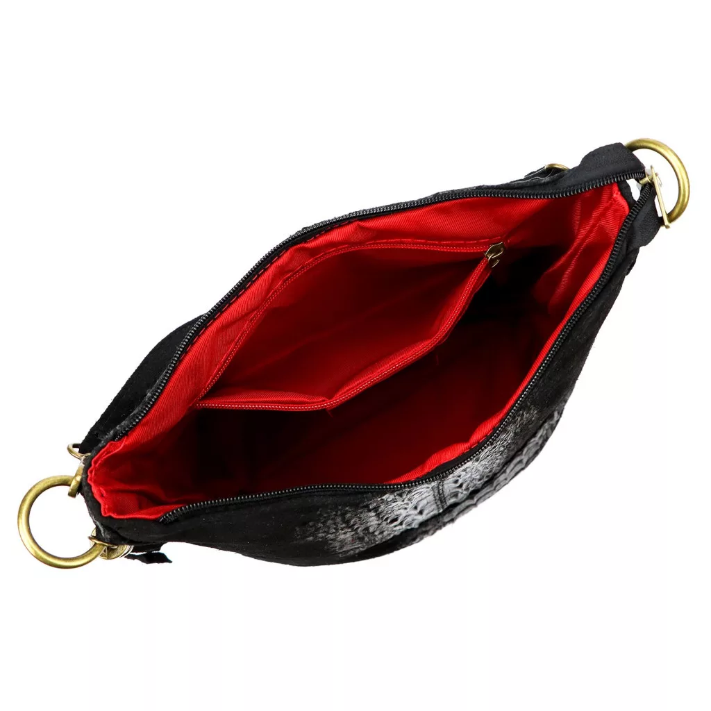 A Luka 26-027 CROCO válltáska a fényes krokodilmintás bőr és a puha velúr különleges harmóniájával emelkedik ki. A fekete árnyalat időtlen eleganciát, a piros bélés pedig modern, nőies kontrasztot teremt. Ideális választás azoknak, akik szeretik a markáns, mégis elegáns kiegészítőket – mindennapi használatra és alkalmi megjelenéshez egyaránt.
