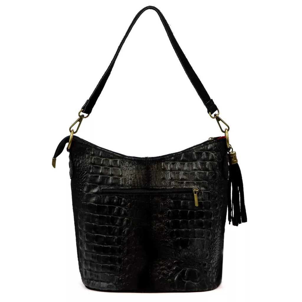 Luka 26-027 CROCO női, fekete krokodil mintás bőr válltáska 26 x 26 x 16 cm