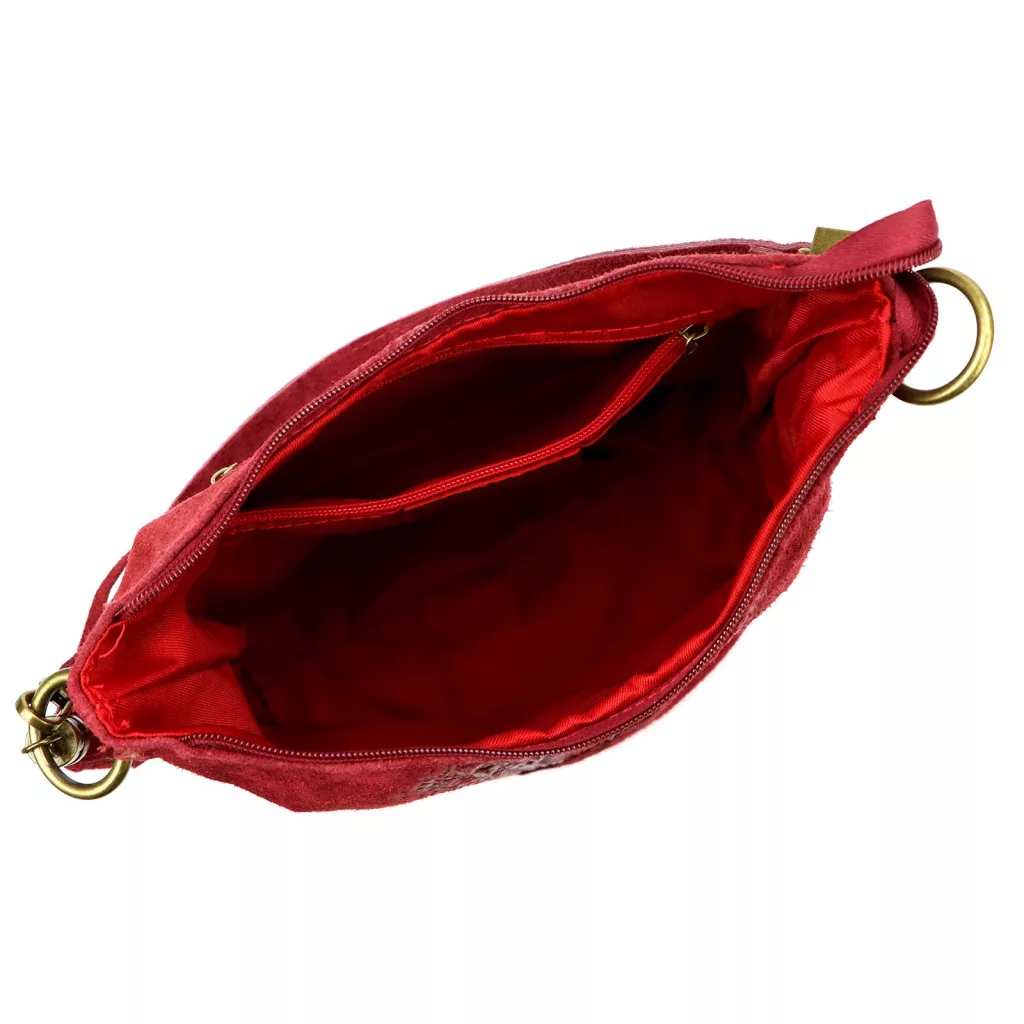 A Luka 26-027 cipzáras záródású, belső tere tágas és praktikus, piros bélése pedig stílusos kontrasztot nyújt a bordó külsővel. Egy tágas főrekesz, egy belső cipzáras zseb és egy hátsó cipzáras zseb segíti a mindennapi rendszerezést és kényelmes tárolást.