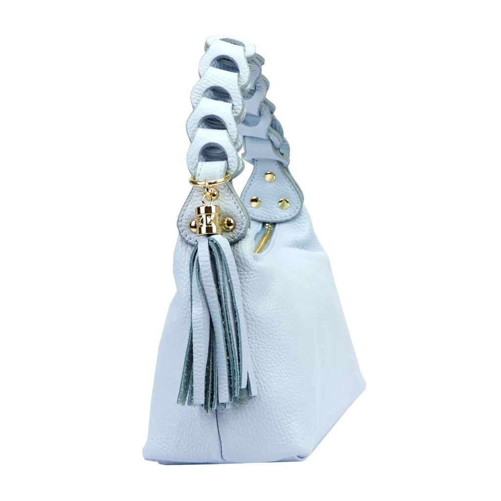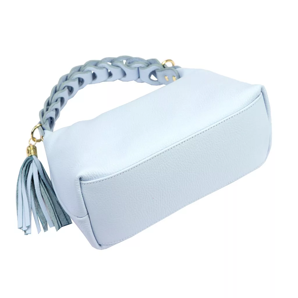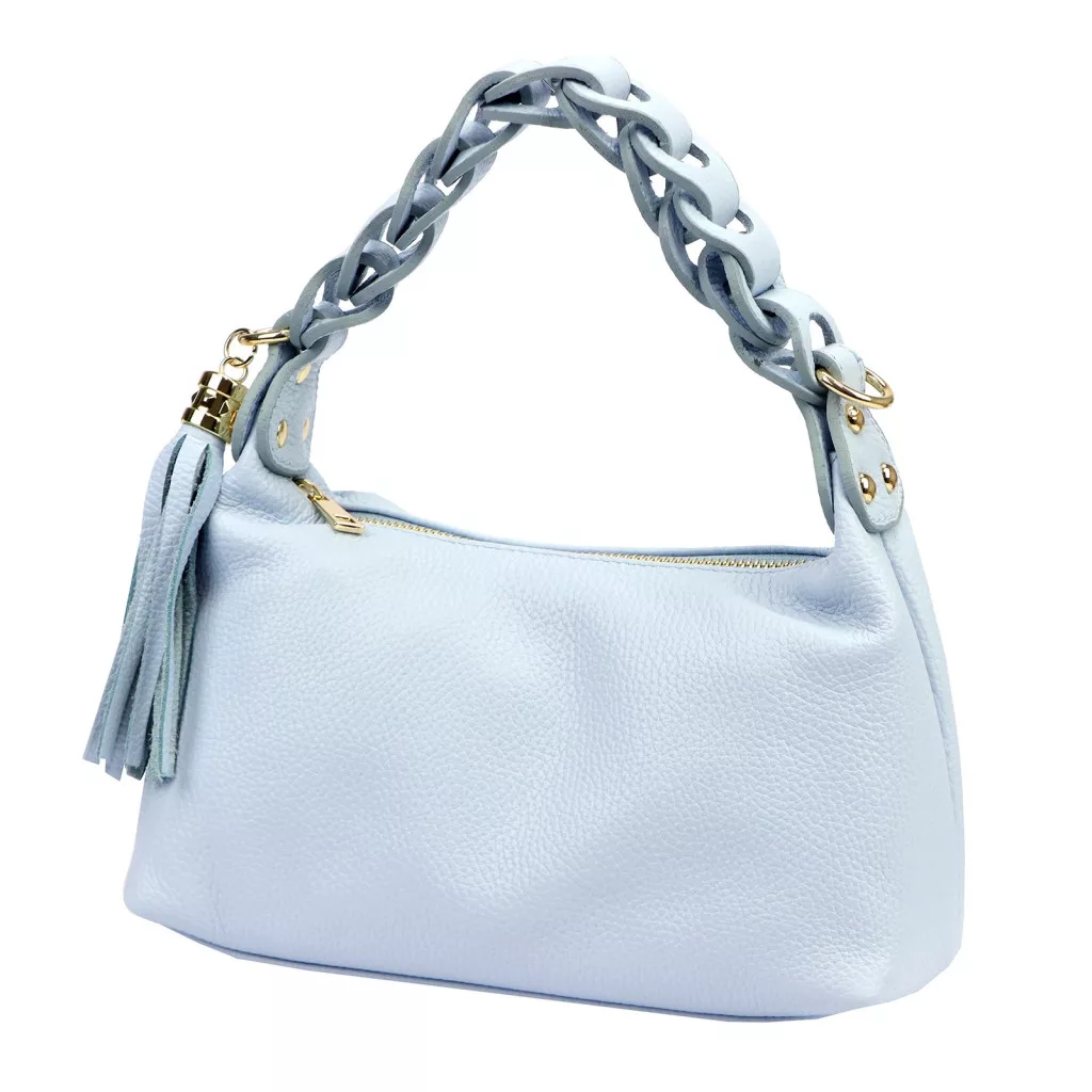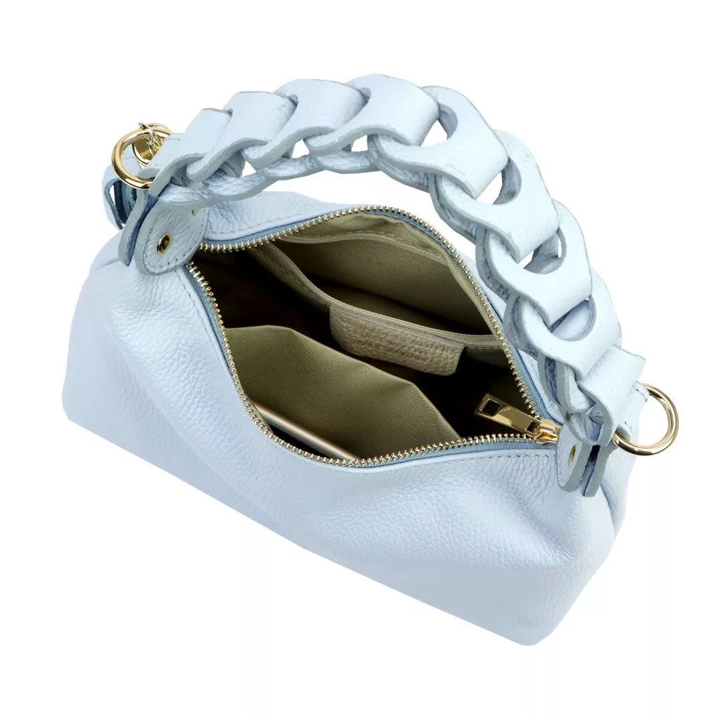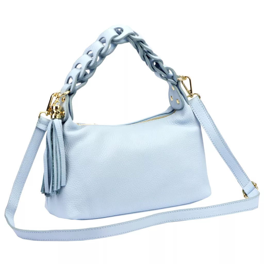 A táska prémium minőségű, valódi marhabőrből készült, amely puha tapintású és tartós viseletet biztosít. A babakék szín a feng shui szerint a nyugalmat, a tisztaságot és a harmóniát szimbolizálja, így friss és légies megjelenést kölcsönöz.
