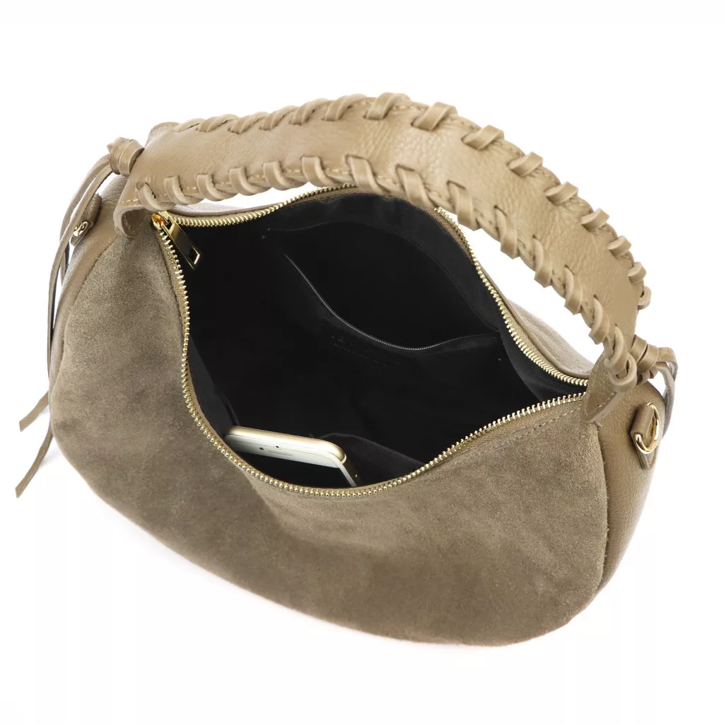 Luka 26-039 taupe női velúr bőr válltáska 35 x 22 x 15 cm