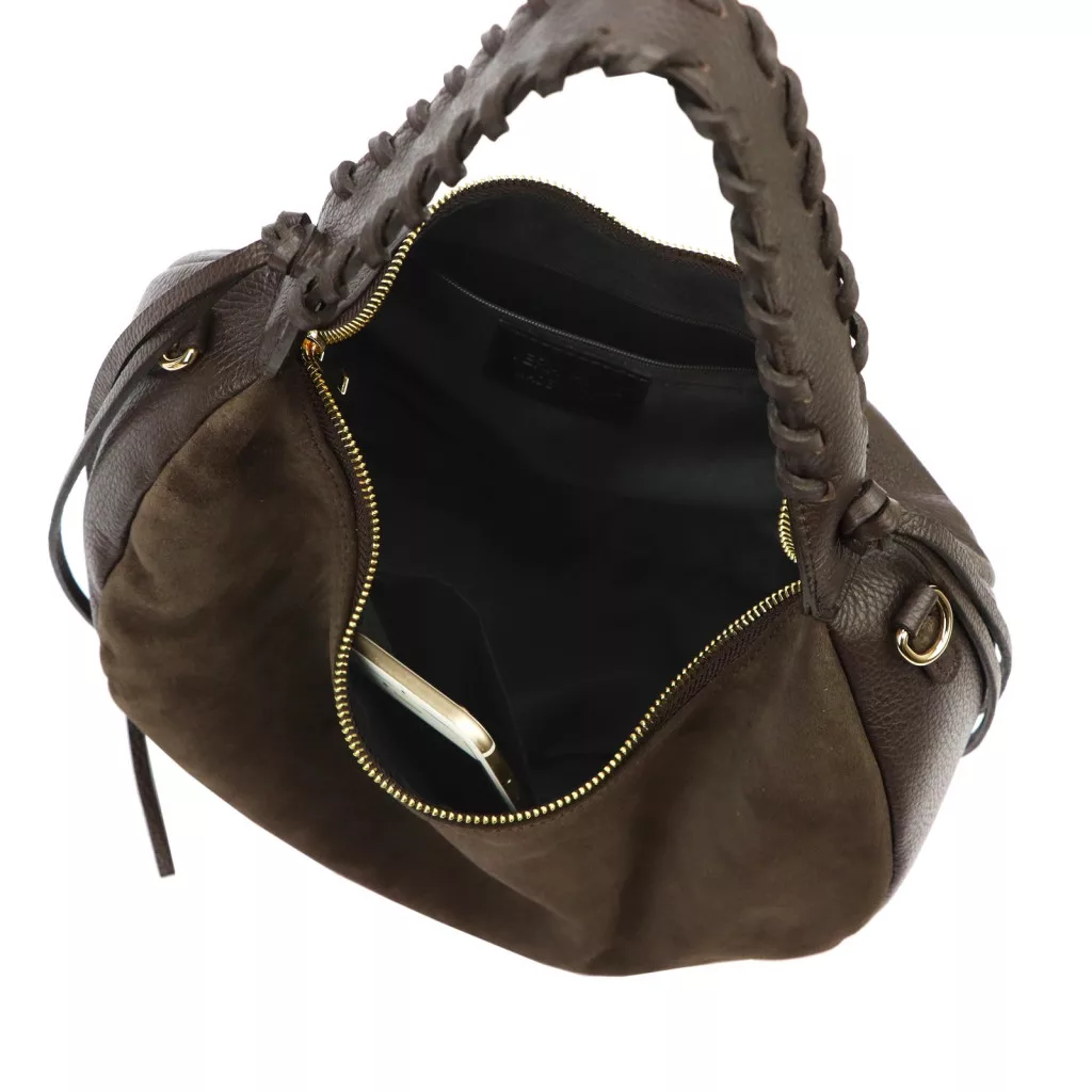 A Luka 26-039 barna válltáska modern, nőies és természetes eleganciát sugároz, amelyet a félhold (half moon) táska jellegzetes ívei és a velúr marhabőr puha textúrája tesz igazán különlegessé. A bársonyos tapintású barna velúr meleg, földszínű tónusa harmonikusan illeszkedik a casual és az elegánsabb összeállításokhoz is, miközben időtálló, könnyen kombinálható megjelenést biztosít. A fonott, vastag válltáskapánt látványos, karakteres részlet, amely egyedi és kényelmes viseletet nyújt, tovább erősítve a táska természetes, bohém hangulatát.