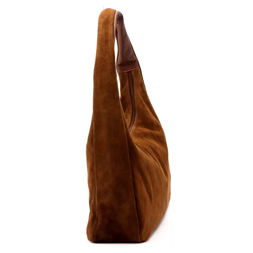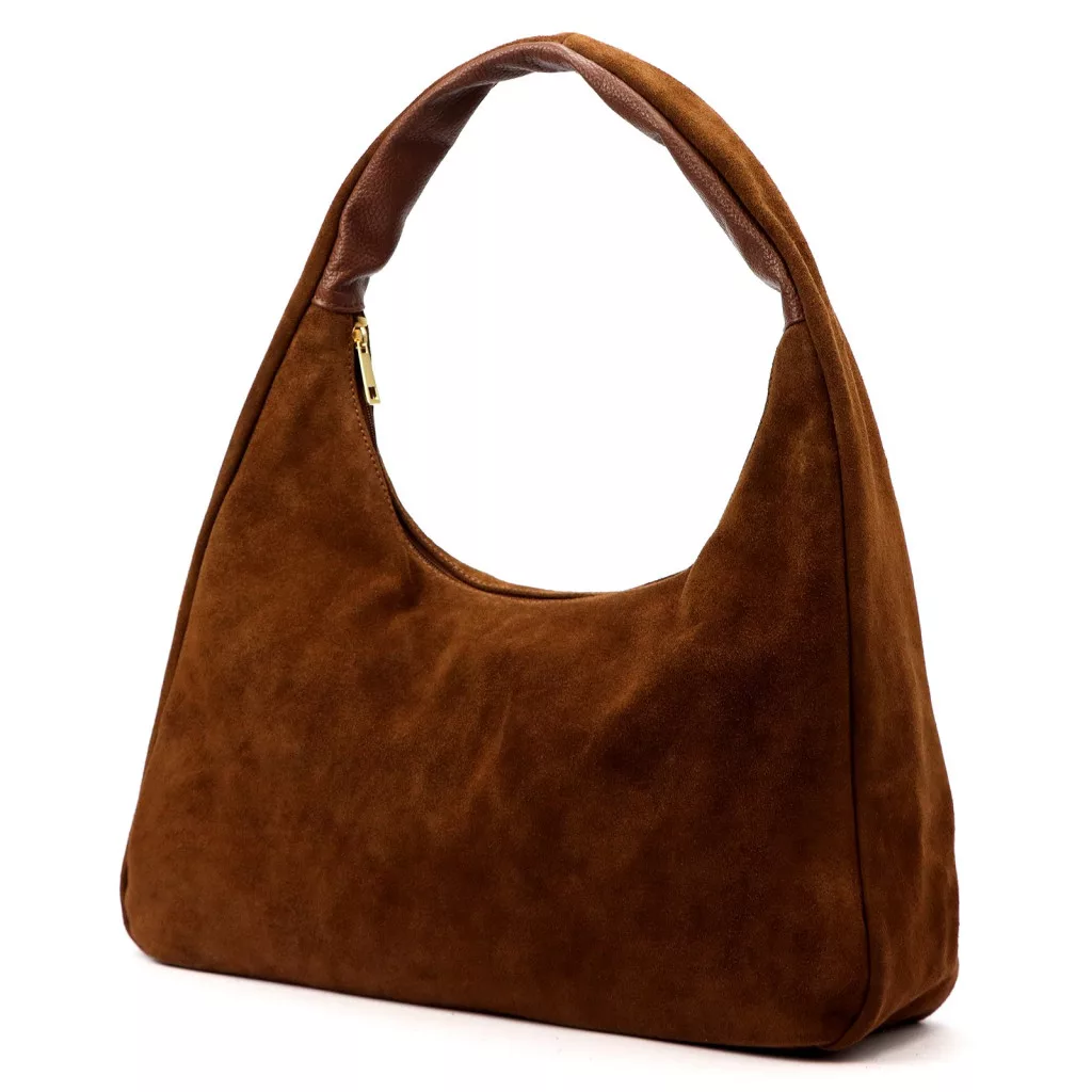 Luka 26-050 konyakbarna női velúr bőr válltáska 44 x 23 x 13 cm