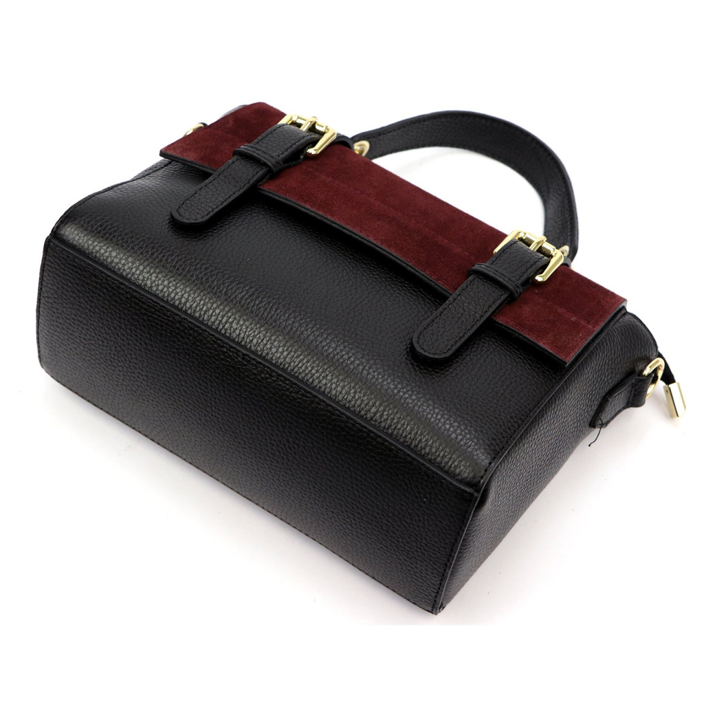 Średniej wielkości, klasyczna torebka z naturalnej, miękkiej skóry licowej z elementem zamszowym, tworzącym klapę. Torebka ma budowę jednokomorową, wykończoną trwałą podszewką, wyposażoną w kieszonkę zapinaną na suwak i kieszeń na telefon. Całość zamykana jest zamkiem błyskawicznym i klapą z dwoma zatrzaskami magnetycznymi. Przeznaczona jest do noszenia w ręku lub w zgięciu łokcia, ale dopinany pasek pozwala wygodnie nosić ją też na ramieniu lub na ukos przez pierś.