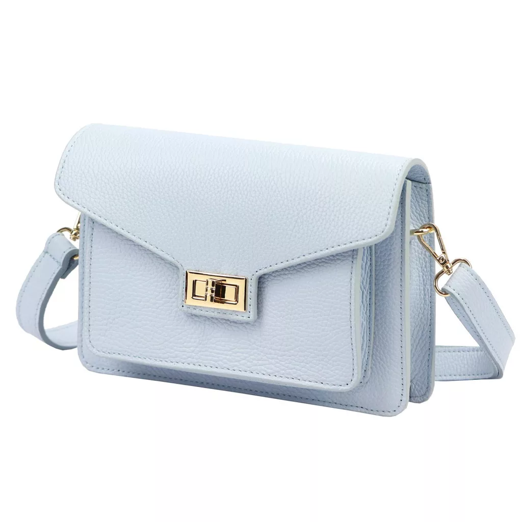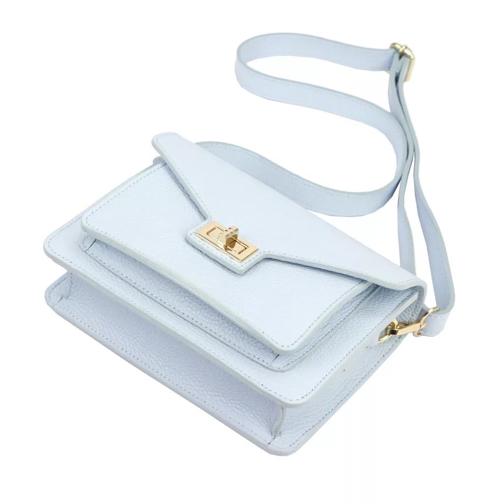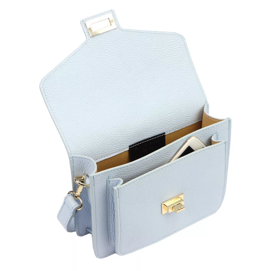 Letisztult, elegáns oldaltáska lehajtható fedéllel és forgózáras megoldással, amely stílusos és biztonságos záródást biztosít. Az elülső nyitott zseb praktikus tárolást tesz lehetővé a gyakran használt kisebb tárgyak számára.
