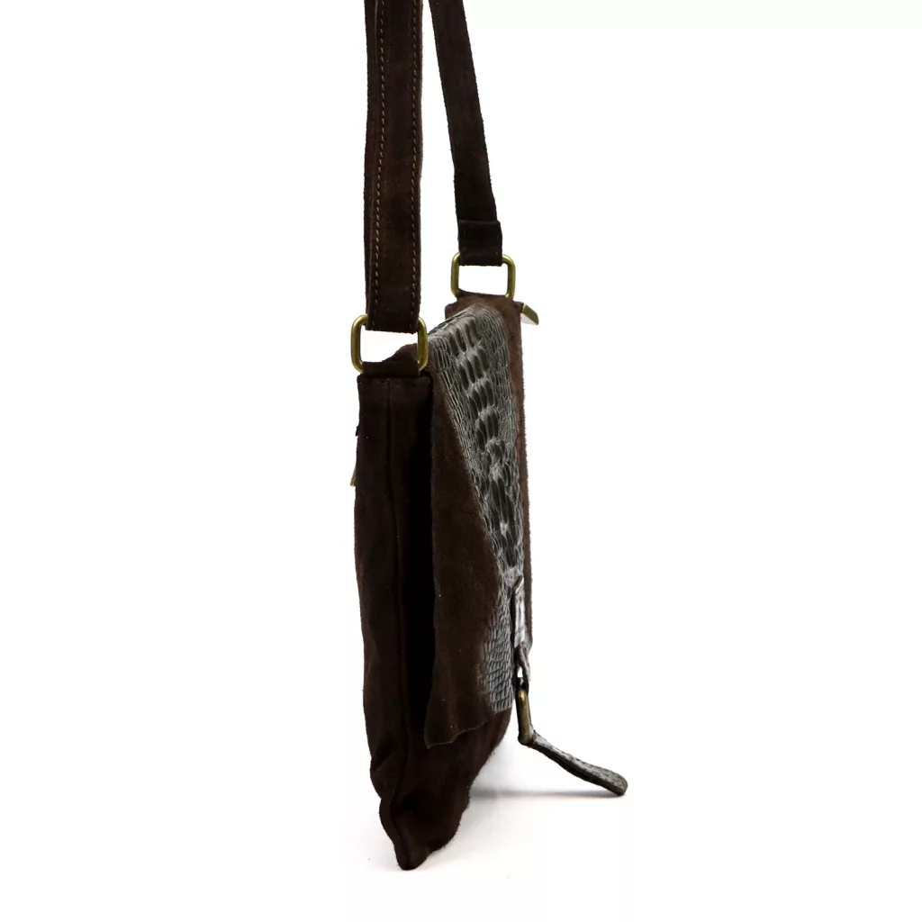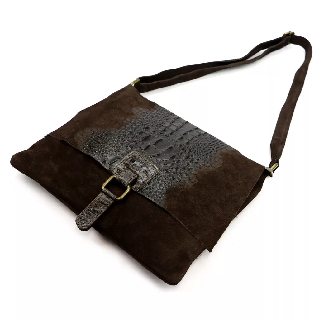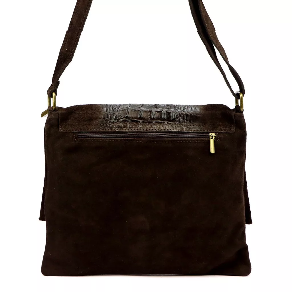 Luka 26-076 CROCO sötétbarna női velúr bőr kézitáska, válltáska 31 x 26 x 5 cm